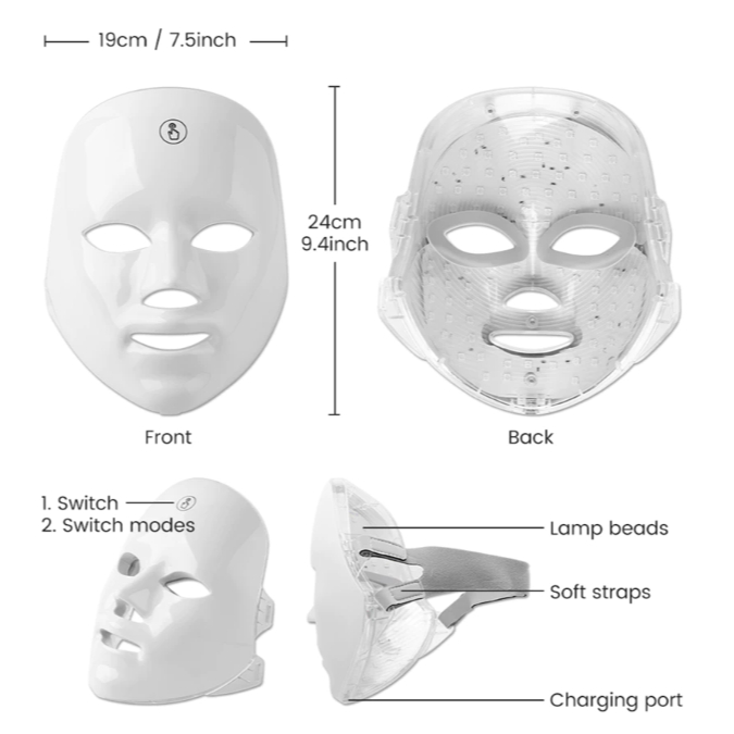 Máscara Facial LED tratamento da pele Foi desenvolvido para as pessoas realizarem seus próprios tratamentos no conforto de casa. Função: 1. Ativado o colágeno Promover o crescimento de colágeno da pele, tornar a pele mais translúcido e branca 2. Fechar os poros Fechar os poros, tornando a pele mais firme, melhorar a luminosidade da pele, mais suave e elástica 3. Acelerar a desintoxicação Efetivamente acelerar a taxa de metabolismo da pele, promover a excreção de toxinas da pele 4. Aumento de oxigênio Promover a permeabilidade da pele, aumentar o oxigênio para bloquear a umidade da pele 5. Reparação da pele Promover a circulação sanguínea, clarear freckless e vermelhos injetados Embalagem inclui: - 1 máscara - 1 cabo USB - 1 Manual Especificação: Cor: Branco Material: ABS Peso: 290g Potência de energia: 12W 5V Luz: 86*3 LEDs Capacidade da bateria de 400mAh Tempo de carregamento: 2 horas Tempo de uso: cerca de 30-40mins Tamanho do produto: 24*19 cm/9,45*7,48 pol Como escolher a luz adequada para a minha necessidade? O princípio de funcionamento da fotodinâmica também chamado de diodo de laser fixo, serve para expandir e fortalecer de modo a alcançar os efeitos de melhoria da circulação do sanguínea e oxigenação, como também acelerar a eliminação das substâncias tóxicas e potencializar o efeito do cosmético utilizado. - (R) LUZ VERMELHA (640 nm) - efeito bioestimulante, regenerador e anti-inflamatório, que aumenta a capacidade de produção dos fibroblastos e regeneração de colágeno, reativa as células, aumentando sua permeabilidade e a dermotonificação cutânea. Combate rugas, linhas de expressão, cicatrizes e manchas. Auxilia no abrandamento da vermelhidão e inflamação, inclusive quando associada à rosácea e eczema. Estimula e ativa a circulação local. - (R+B) LUZ PÚRPURA (610 nm) - A luz na faixa dos 610 nm promove equilíbrio da pele e reestruturação celular, combate a senilidade e o ressecamento da pele. - (R+G) LUZ AMARELA (590 nm) – estimula o sistema linfático e nervoso que pode tonificar os músculos, aprimora o sistema imunológico, reduz linhas de expressão finas da face, eliminas rugas, tranquiliza e equilibra a pele sensível. - (G) LUZ VERDE (523nm) - A luz verde na faixa dos 525 nm atua nas manchas senis e na hiperpigmentação. Penetra nas camadas basais da pele e promove o seu rejuvenescimento. Estimula circulação linfática e a microcirculação sanguínea. -(R+G+B) LUZ BRANCA (510nm) – ativa a circulação sanguínea e linfática, estimula o metabolismo local. - (G+B) LUZ AZUL CLARA (470nm) - A luz zul clara na faixa dos 470 nm produz relaxamento da pele e combate a pele hiperestendida. - (B) LUZ AZUL (463 nm) - ação bactericida, oxigenante e cicatrizante. Na acne ativa, tem efeito fotodestruidor da bactéria propionibacterium acnes, agindo diretamente na excessiva produção de gordura inibindo o excesso de secreção sebácea, auxiliando na oxigenação e na regeneração do tecido. Previne contra inflamação e tranquilizante.