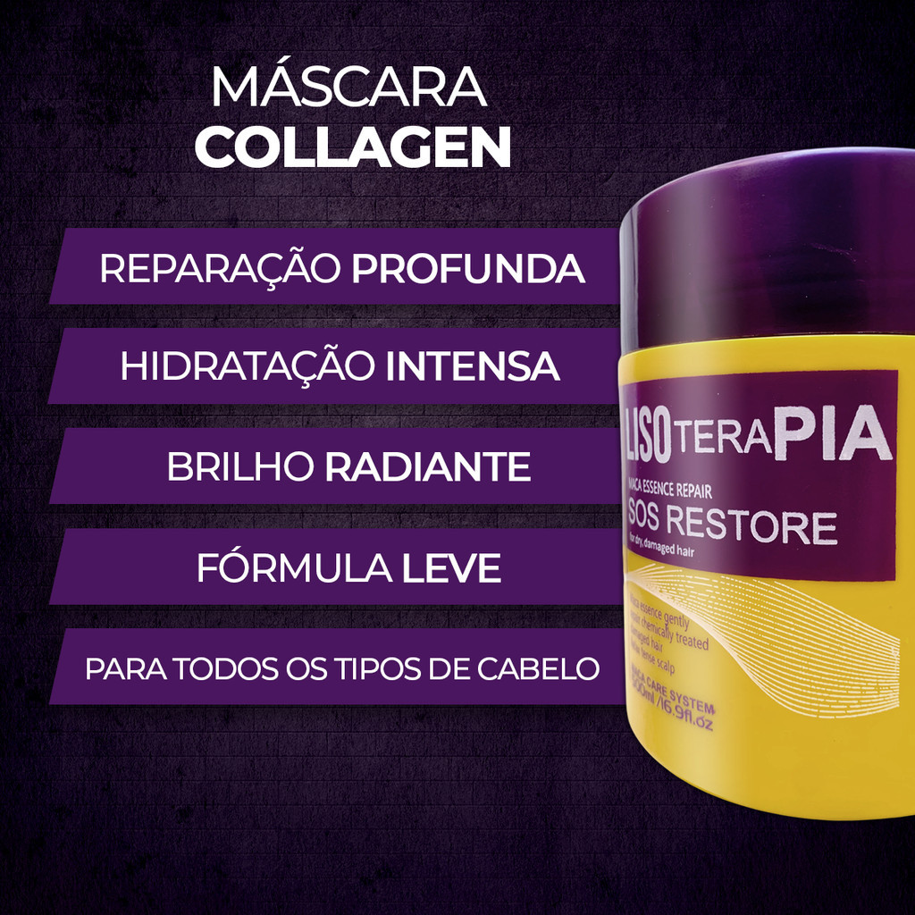 Cabelos renascidos com a Máscara Capilar de Colágeno Lisoterapia! Cansado de fios danificados, quebradiços e sem vida? A Máscara Capilar de Colágeno Lisoterapia é a sua chave para um cabelo radiante, macio e cheio de vida. Com uma fórmula inovadora que combina essência rara de maca e tecnologia de colágeno ativo, essa máscara penetra profundamente nos fios, reparando as fibras capilares e preenchendo as cavidades, para um resultado incrivelmente hidratado, disciplinado e com brilho intenso. Benefícios: - Reparação profunda: Ideal para cabelos secos e danificados por ferramentas de calor, químicas ou outros agentes externos. - Hidratação intensa: Fornece hidratação profunda e duradoura, deixando os fios macios e maleáveis. - Brilho radiante: Nutre e revitaliza os cabelos, devolvendo o brilho natural e a luminosidade. - Fórmula leve: Não pesa nos fios, proporcionando um toque suave e leve. - Para todos os tipos de cabelo: Pode ser utilizada em cabelos lisos, cacheados, crespos, coloridos ou quimicamente tratados. - Sem parabenos e sulfatos: Fórmula segura e livre de ingredientes agressivos. Experimente a Máscara Capilar de Colágeno Lisoterapia e sinta a diferença! Cabelos revitalizados, macios e com brilho intenso te esperam!