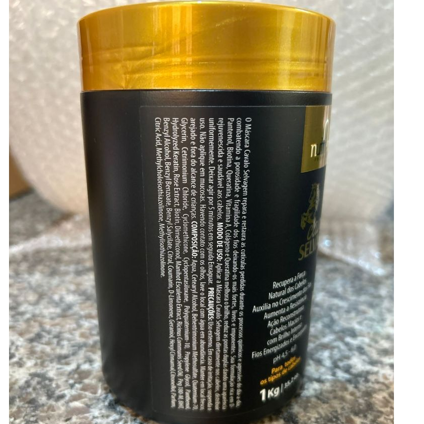 A Máscara Cavalo Selvagem repara e restaura as cutículas perdidas durante os processos químicos e agressões do dia-a-dia, combatendo a porosidade e fragilidade dos fios deixando-os mais fortes livres e imponentes. Sua formulação rica em D-Pantenol, Biotina, Queratina, Vitamina A, Colágeno e Queratina melhora o brilho, reduz as pontas duplas dando uma aparência rejuvenescida e saudável aos cabelos. Modo de uso: Aplicar a Máscara Cavalo Selvagem diretamente nos cabelos, distribuir uniformemente. Deixar agir por 5 minutos, em seguida enxaguar. Composição: Aqua, Cetearyl Alcohol, Behentrimonium Methosulfate, Quaternium-70, Glycerin, Cetrimonium Chloride, Cyclomethicone, Cyclopentasiloxane, Polyquaternium-10, Propylene Glycol, Panthenol, Hydrolyzed Keratin, Rose Extract, Biotin, Dimethiconol, Manihot Esculenta Extract, Ricinus Communis Seed Oil, Peg 180-M, BHT, Benzyl Alcohol, Benzyl Benzoate, Benzyl Salycilate, Citral, Coumarin, D-Limonene, Geraniol, Hexyl Cinnamal, Citronellol, Parfum, Citric Acid, Methylcholoisothiazolinone, Methylisothiazolinone. Precauções: Uso externo. Em caso de irritação, suspenda o uso. Não aplique em mucosas. Havendo contato com os olhos, lave o local com água em abundância. Manter em local fresco, arejado e fora do alcance de crianças. OBS: Os frascos (embalagens) dos produtos podem sofrer alterações nas cores de acordo com a demanda da fabricação, sem alteração na fórmula do produto.
