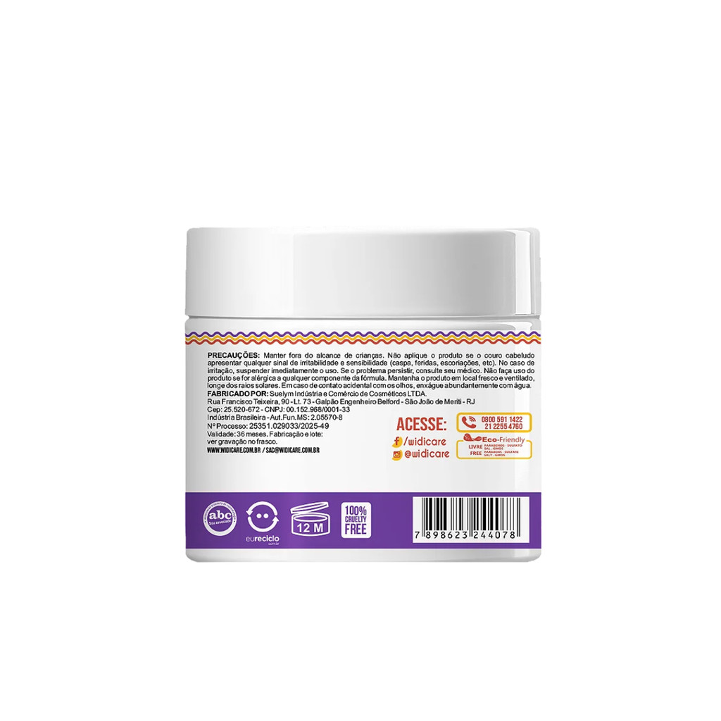 Máscara Juba Butter Oil Antiporosidade 500g – Widi Care A Máscara Juba Butter Oil Antiporosidade da Widi Care é um tratamento nutritivo profundo ideal para cabelos ondulados, cacheados e crespos que sofrem com porosidade, ressecamento e falta de brilho. Sua fórmula é rica em manteigas e óleos vegetais que restauram a integridade dos fios, selam a cutícula e devolvem a maciez natural. ???? Indicação: Cabelos ondulados, cacheados e crespos (2A a 4C)???? Liberada para No Poo e Low Poo???? Vegana e cruelty-free ???? Benefícios Combate à porosidade: sela as cutículas e uniformiza a superfície dos fios. Nutrição intensa: rica em manteigas vegetais que tratam profundamente a fibra capilar. Maciez e brilho: deixa os cabelos mais sedosos e com aspecto saudável. Fórmula leve e eficaz: ação potente sem pesar nos fios. Ideal para cronograma capilar na etapa de nutrição. ???? Ativos Naturais Manteiga de karité: hidrata e protege os fios contra o ressecamento. Manteiga de ucuuba: repõe nutrientes e fortalece os fios. Manteiga de pistache: cria uma camada protetora e ajuda na retenção da umidade. Óleo de jojoba: equilibra a oleosidade e traz brilho natural. Óleo de coco e babaçu: promovem hidratação e emoliência profunda. ????♀️ Como Usar Máscara de tratamento: após lavar os cabelos, aplique a máscara nos fios úmidos, enluvando bem. Deixe agir de 5 a 10 minutos e enxágue completamente. Umectação noturna: aplique nos cabelos secos antes de dormir, deixe agir durante a noite e lave normalmente pela manhã. ???? Informações Técnicas Peso: 500g pH: 3,5 – 4,5 Fórmula livre de sulfatos, parabenos e petrolatos Produto não testado em animais