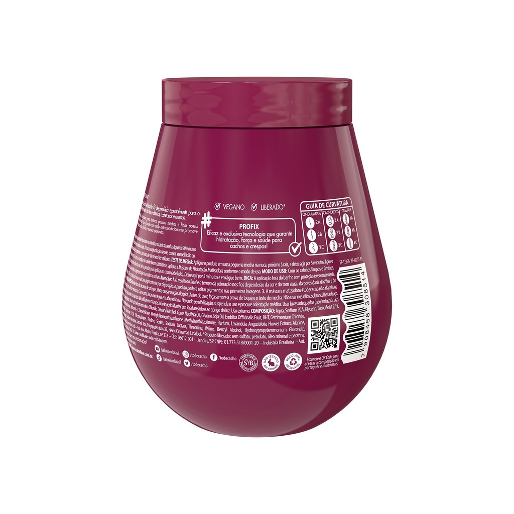Máscara de Hidratação Matizadora! A Máscara de Hidratação Matizadora Marsala Roxo #todecacho intensifica e reaviva a cor dos seus cabelos, sejam eles claros ou marsala, naturais ou tingidos. Além disso, conta com a tecnologia PROFIX que garante força e saúde para cachos e crespos, além de fórmula enriquecida para uma carga extra de hidratação capilar. Ação condicionante. Desenvolvido para cabelos ondulados, cacheados e crespos, o produto é indicado para fios desbotados, desidratados e que precisam de manutenção de cor. Ativos nutritivos. A Máscara Matizadora Marsala Roxo #todecacho traz Extrato de Lavanda e Óleo de Amla, que proporcionam hidratação, vitalidade e brilho intenso. Modo de uso. Com os cabelos limpos e úmidos, aplique a Máscara de Hidratação Matizadora mecha a mecha, massageando da raiz às pontas. Deixe agir entre 5 e 10 minutos e enxágue bem. Finalize como desejar. Meu cabelo diz tudo. A Salon Line é especialista em valorizar sua beleza única, por isso, estamos presentes em cada momento transformador da sua jornada: do interior, até o último fio de cabelo. - Produto vegano; - Uso recomendado a partir de 12 anos; - Formulado especialmente para seu tipo de cabelo; - O cuidado diário que seu cabelo precisa; - As imagens podem ser ilustrativas.