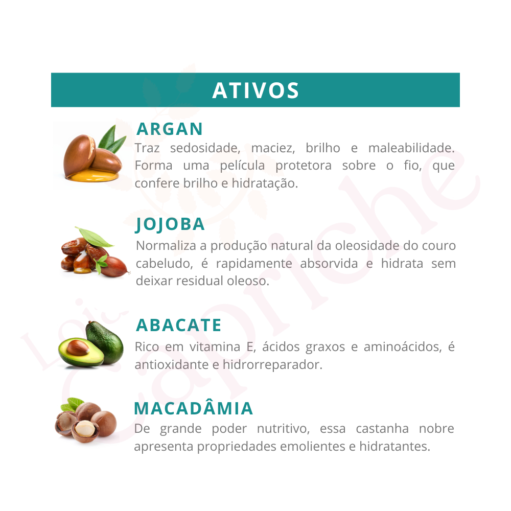 Máscara +Nutrição Bio Extratus 250g Deposita nutrientes na fibra capilar, repara, protege, fortalece e hidrata profundamente os fios. O blend de óleos feito com argan, jojoba, abacate e macadâmia cria uma fórmula nobre, rica em nutrientes, que faz um tratamento intensivo nos cabelos. Após lavar os cabelos, aplique a máscara, massageando mecha a mecha. Para intensificar o tratamento, use touca de hidratação. Deixe agir de 3 a 5 minutos. Enxágue. Use também os outros produtos da linha +Nutrição. INDICAÇÃO Cabelos secos e desnutridos. FUNÇÃO Hidratar e nutrir os fios profundamente. RESULTADOS E BENEFÍCIOS Cachos nutridos e vitalizados. CONTÉM: 1 - Máscara +Nutrição Bio Extratus 250g
