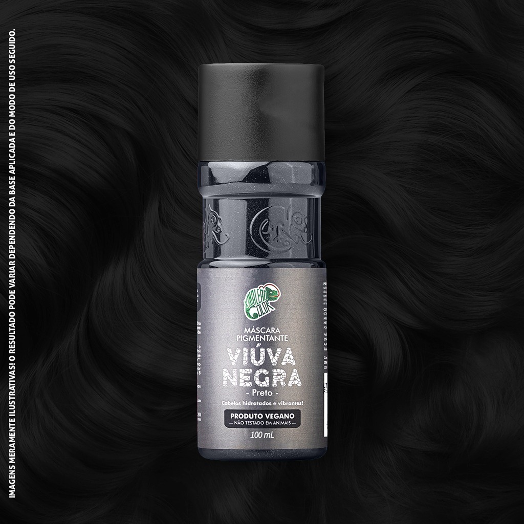 A Máscara Pigmentante Viúva Negra é uma coloração fantasia vegana, não agressiva aos fios, que além de colorir também hidrata, proporcionando cabelos bem cuidados e com um tom preto. Tudo isso aliado ao seu cheirinho inconfundível. O produto pode ser utilizado diluído no Creme Diluidor Arco-Íris; porém, para um resultado mais intenso de pigmentação, o ideal é aplicá-lo puro. O teste de mecha é indispensável antes da aplicação completa. Para obter o melhor desempenho, recomenda-se a aplicação em cabelos previamente descoloridos, entre os tons 8 (loiro claro) e 10 (loiro claríssimo), já matizados. Em bases mais escuras ou com resíduo de outras colorações, o resultado pode não corresponder ao esperado. Para garantir maior durabilidade da cor, recomenda-se lavar os fios com shampoo sem sulfato e utilizar a nossa linha Mais Cor. A coloração pode durar até 25 lavagens, mas é importante lembrar que quanto maior a frequência de lavagens, menor será a intensidade da cor. Para manter o brilho e a tonalidade, sugerimos o uso do Banho de Brilho Viúva Negra. Em cabelos quimicamente tratados, a pigmentação pode apresentar menor intensidade ou não fixar o pigmento. Já em fios grisalhos, a coloração pode não pigmentar como o esperado e pode desbotar mais rapidamente. Nossas Máscaras Pigmentantes podem ser misturadas entre si para a personalização do tom desejado. Produto de uso exclusivo para coloração capilar. Recomenda-se o uso de luvas durante a aplicação para evitar manchas temporárias nas mãos. Caso ocorra pigmentação na pele, ela não reflete o desempenho do produto nos cabelos, pois a estrutura cutânea é diferente da estrutura capilar. Original.