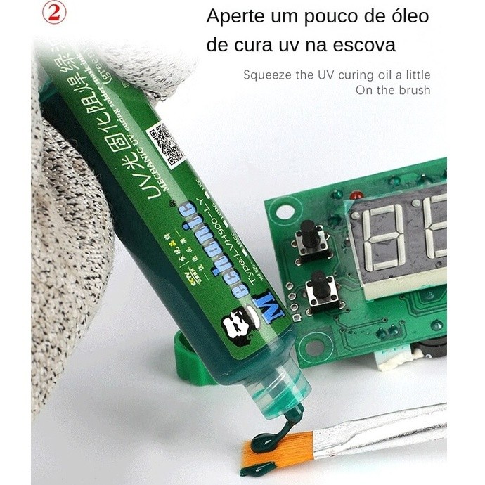 Mascara UV Uvh900-10cc Envio: Em até 12 horas úteis após sua compra. 10 ml UV tinta verde. Isola a placa de circuito impresso contra curto-circuito e arco. Esta pintura é usada para proteger os traços de PCB contra corrosão, umidade. Também é usado para reparo de PCB após a estação de soldagem e retrabalho. Especificações: Cor: Verde Seringa verde Duração: Aprox. 10 cm Material: Tinta Capacidade de tinta : 10 ml