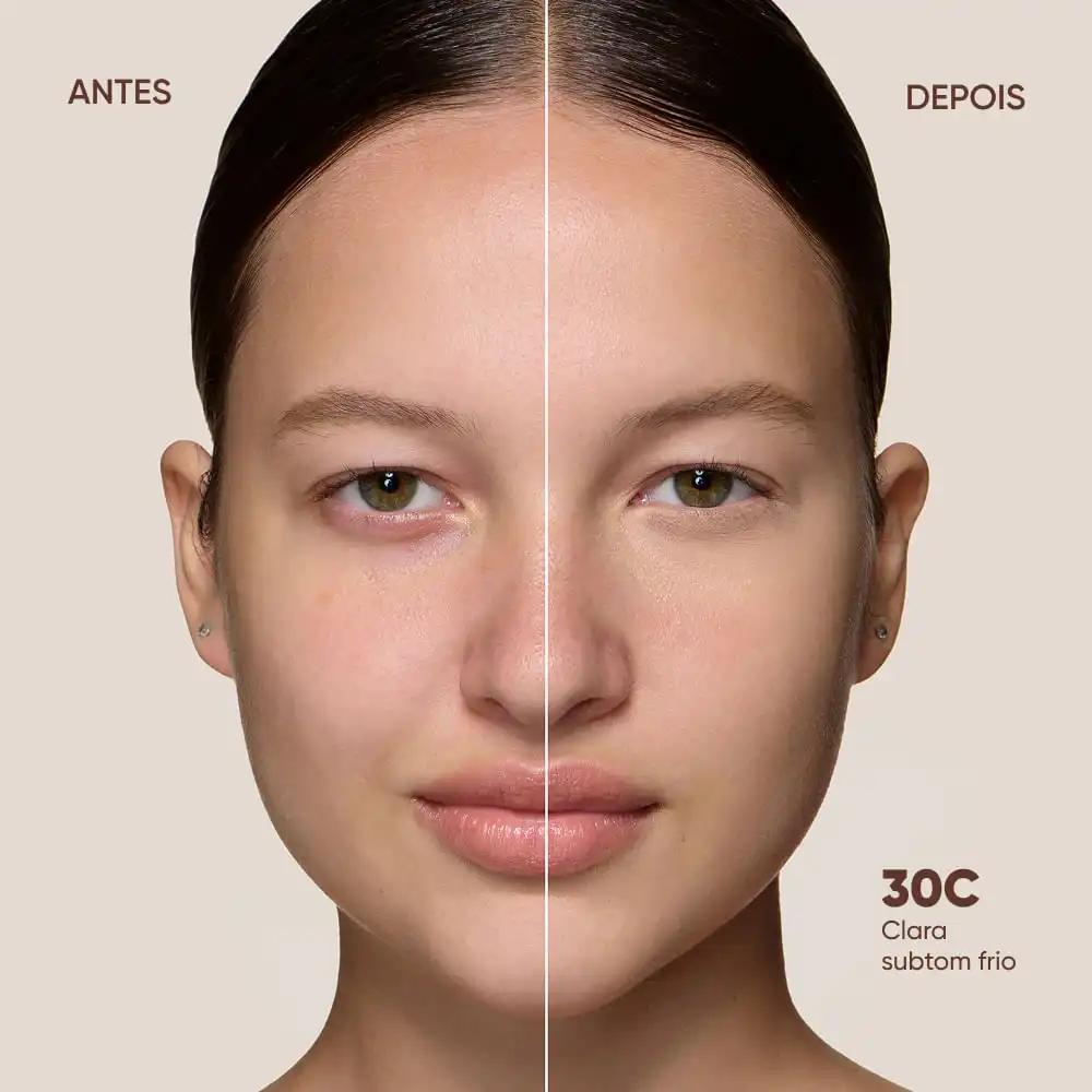 Camufla, corrige e ilumina com uma fórmula cremosa de cobertura total que desfoca as imperfeições.