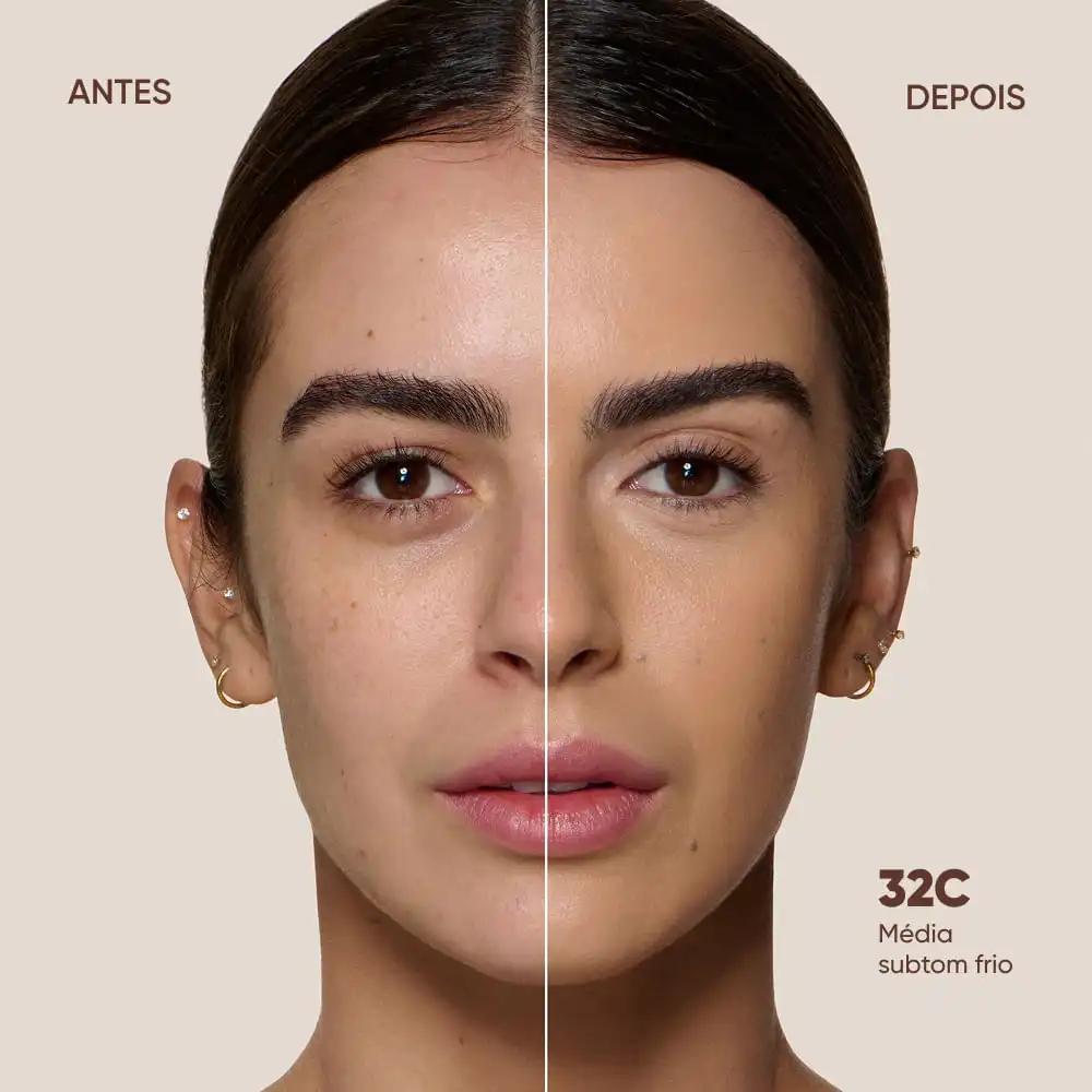 Base hidratante com textura leve e confortável. Disfarça as imperfeições deixando a pele com acabamento uniforme, radiante e natural. Resistente à água e a transferência. Longa duração.