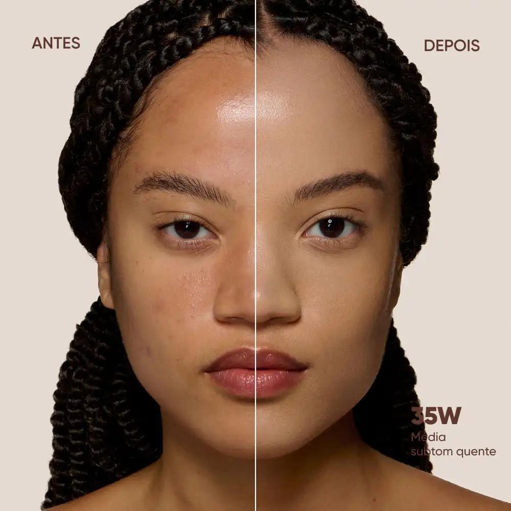 Base hidratante com textura leve e confortável. Disfarça as imperfeições deixando a pele com acabamento uniforme, radiante e natural. Resistente à água e a transferência. Longa duração.
