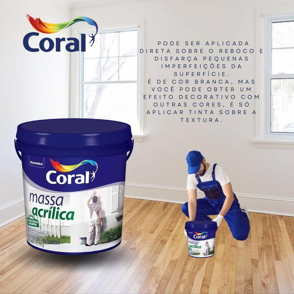 CORAL MASSA ACRÍLICA 5,7 KG Descrição do Produto A Textura Acrílica é a maneira mais prática de se obter um efeito de textura em suas paredes, pois ela pode ser aplicada direta sobre o reboco e disfarça pequenas imperfeições da superfície. É de cor branca, mas você pode obter um efeito decorativo com outras cores, é só aplicar tinta sobre a Textura. Além disso, é muito simples aplicar o produto: ele dispensa o uso de massa fina em superfícies de alvenaria e pode ser aplicado em ambientes internos e externos. Uma lata de 30KG pinta até 35m² por demão (Pode variar de acordo com a irregularidade da superfície e/ou efeito desejado) . ..................................................................................................................................... Materiais de aplicação Rolo de borracha, rolo de lã, rolo de espuma, desempenadeira, escova, etc ..................................................................................................................................... Características do produto: Oculta imperfeições da superfície Multi superfícies Fácil de aplicar Alto poder de enchimento .................................................................................................................................. Armazenamento Conserve a embalagem bem fechada, sempre na posição vertical, em local coberto, longe de fontes de calor e umidade Para mais informações, consultar o rótulo e a Ficha de Segurança (FISPQ) do produto. Acabamento- Fosco Rendimento ≈ 1 kg/m² Secagem ao toque: Ao toque: 2h Para pintura: 4h Número de demãos: 1 .................................................................................................................................. LOJA .................................................................................................................................. O grupo SOLUWAN atua neste mercado há mais de 30 anos, possuindo loja física e online. Com 30 anos de história procuramos atender nossos clientes com agilidade, competência, ética e honestidade. Vendemos somente produtos novos e de qualidade garantida. Despachamos em até 24 horas. Entregamos para todo o Brasil. .................................................................................................................................. DÚVIDAS FREQUENTES .................................................................................................................................. Pergunta: Como é embalado o produto? Resposta: Todos os nossos produtos vendidos são embalados em caixas lacradas ou plástico stretch. Em respeito ao meio ambiente 90% das caixas são reutilizadas. Pergunta: Quem faz a entrega? Resposta: A entrega é terceirizada, feita via CORREIOS ou TRANSPORTADORA. Pergunta: O envio é feito em quantos dias? Resposta: Nós enviamos o seu pedido no prazo máximo de 24 horas após a confirmação de sua compra, sendo um dos envios mais rápidos da plataforma. Pergunta: Os produtos são novos ou usados? Resposta: Todos os produtos que trabalhamos são novos e com qualidade garantida. .................................................................................................................................. #massacorrida #massacorridacoral #massacorridaacrilica #massaacrilica #massacorridadiretoda #fabrica2499barrica25kg #massacorrida18litros #massacorrida25kg #massaacrilica25kg #massacorrida #massacorridacoral18l #massacorridasuvinil18litros #massacorridaalessi #barricademassaparatextura #massacorridapva #massacorridasuvinil