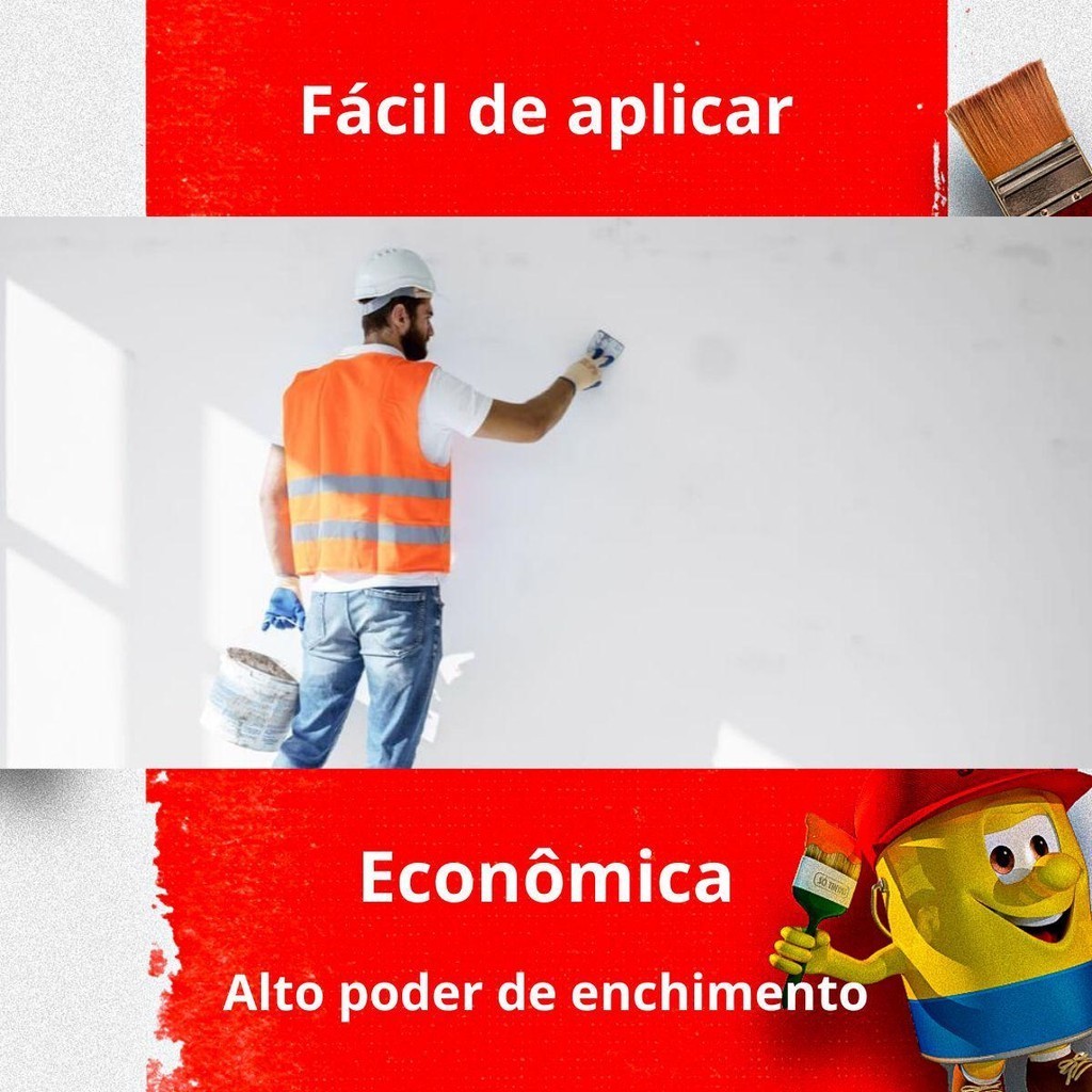 PRODUTO SEMELHANTE À SUVINIL, CORAL E EUCATEX, PODE CONFIAR. ÓTIMO CUSTO BENEFÍCIO, VOCÊ NÃO VAI SE ARREPENDER !! Transforme suas paredes com a Massa Acrílica ST: a solução definitiva para um acabamento perfeito! Para garantir que suas paredes permaneçam impecáveis e com uma aparência nova por muito mais tempo, é fundamental preparar a superfície adequadamente. A Massa Acrílica ST é a escolha ideal para uniformizar, nivelar e corrigir pequenas imperfeições em superfícies internas de alvenaria e concreto. Sua fórmula avançada proporciona um acabamento profissional que impressiona. Diluição com água: 10% a 20% de água potável. Rendimento: até 60 m² por demão. Demãos: 2 a 4, com intervalo de 2 horas entre as demãos Secagem: Ao toque: 2 horas. Entre demãos: 2 horas. Final: 6 horas. Aplicação: Espátula ou desempenadeira metálica. Cor: Branco Aplicação: Recomendado para áreas internas e externas. Reboco, gesso, massa fina, fibrocimento, concreto, blocos de concreto, paredes pintadas com látex PVA ou acrílico. Benefícios Incomparáveis: Secagem Rápida: Reduza o tempo de espera e avance rapidamente para a próxima etapa da pintura. Sua fórmula de secagem rápida permite que você termine o trabalho com eficiência. Elevada Consistência: A aplicação é fácil e homogênea, garantindo uma superfície lisa e uniforme que destaca a beleza de qualquer pintura. Excelente Resistência: Obtenha durabilidade superior e proteção contra desgastes, garantindo que suas paredes permaneçam impecáveis por mais tempo. Baixíssimo Odor: Trabalhe com conforto e sem incômodos. Ideal para ambientes internos, proporcionando uma experiência mais agradável durante a aplicação. Características de Destaque: Alto Poder de Enchimento: Cobre e corrige pequenas imperfeições de maneira eficaz, proporcionando uma superfície perfeita para a pintura. Ótima Aderência: Adere facilmente às superfícies de alvenaria e concreto, oferecendo uma base sólida e segura para a pintura. Consistência Cremosa: Facilita a aplicação e proporciona um acabamento uniforme e liso, economizando tempo e material. Invista na Massa Acrílica ST e transforme a preparação de suas paredes em uma tarefa fácil e eficiente, garantindo um resultado profissional que impressiona! Adquira agora e veja a diferença na qualidade e durabilidade da sua pintura! Principais perguntas Acompanha nota fiscal? Sim, todos os nossos produtos são enviados com nota fiscal. O envio é por Correios? Pode ser enviado por Correios ou por transportadora privada, isso vai depender da disponibilidade das transportadoras que atendem o seu endereço. Porque não posso comprar mais de 1 unidade no mesmo pedido? Infelizmente há uma limitação por parte das transportadoras. Elas enviam apenas 1 unidade em cada pedido devido às dimensões e peso do pacote. Para mais unidades, você vai precisar fazer mais de um pedido, respeitando o limite máximo de 1 por pedido. Só Tintas, sempre a melhor opção. Somos a maior rede de lojas de tintas no estado do Rio de Janeiro. Desde 1977, a Só Tintas atua no Rio de Janeiro oferecendo os melhores produtos e soluções em pintura imobiliária, automotiva e industrial. Somos uma empresa familiar que começou em Teresópolis e hoje temos mais de 30 lojas físicas. Trabalhamos de forma ética e transparente, com o principal objetivo de proporcionar aos nossos clientes um atendimento de excelência, provendo as melhores soluções. Nossa missão é levar cor para a vida das pessoas. Por isso a Só Tintas é Sempre a Melhor Opção
