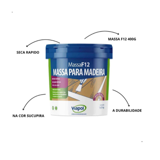 Massa Calafetar Madeira F12 1,65kg e 400g Varias Cores - Viapol