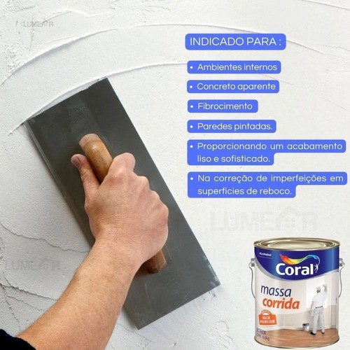| Massa Corrida Pva 6kg (5,7KG) Facil De Lixar E Aplicar Galão - Coral este produto | R$ 43,90 | 32% | 4.9/5 | 21 |