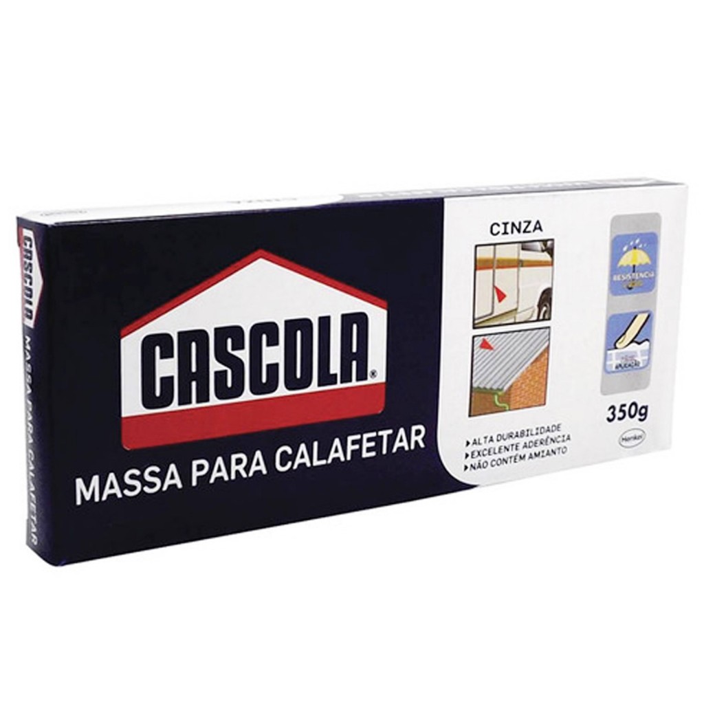 Massa de Calafetar Cinza - 350 g Descrição: - Cascola Massa para Calafetar é um produto formulado a partir de resinas sintéticas e cargas minerais; - Devido à sua composição, possui plasticidade permanente, não escorre, nem se torna dura ou quebradiça, mesmo com o passar do tempo; - Possui boa aderência em vários substratos, tais como metais, vidro, plástico e muitas outras superfícies; - É inodora, insípida e inócua. Informações Gerais: - Alta durabilidade; - Excelente aderência; - Não contém amianto; - Possui plasticidade permanente; - Inodora, insípida e inócua; - Não ataca as superfícies onde é aplicada; - Resistência a altas temperaturas. Aplicações Sugeridas: - Vedação de furos e rachaduras de telhas de cimento; - Reparos de carrocerias, baús metálicos, automóveis; - Vedação de frestas para evitar a entrada de água ou poeira; - Não adere materiais à base de polietileno, polipropileno, silicone e PTFE (Resina antiaderente). Especificações Técnicas: - Marca: Cascola; - Cor: Cinza; - Tipo: Massa; - Conteúdo: 350 g. Itens Inclusos: - 01 Massa de calafetar cinza - 350 g.