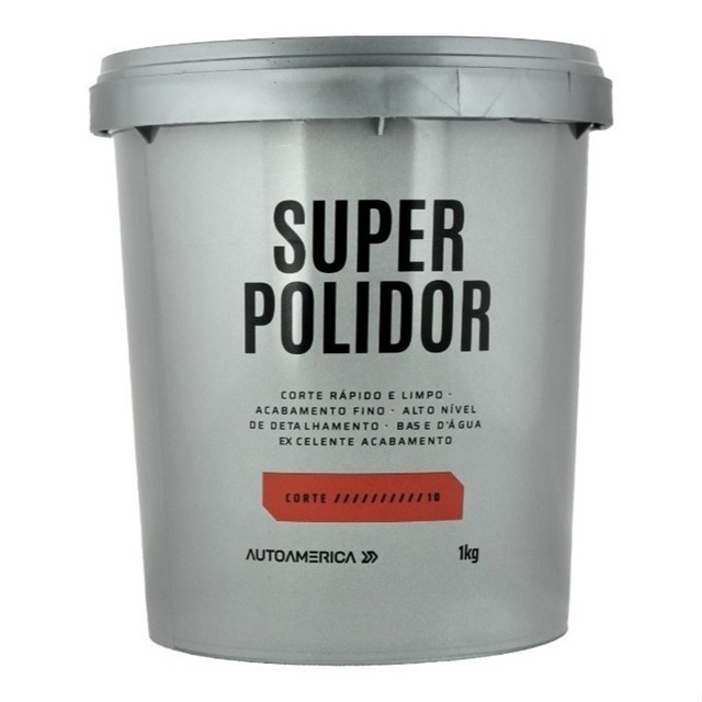 SUPER POLIDOR é uma massa de polir com alto poder de corte. Com formulação de alto rendimento e mínimo de poeira, o produto remove marcas de lixamento. Indicado para pinturas originais e repinturas.