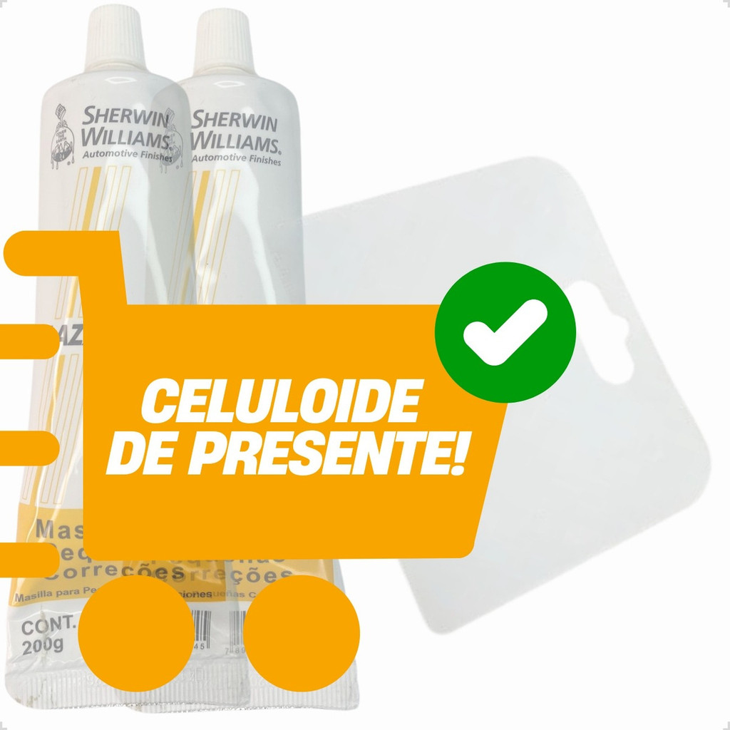 2 Massa Para Pequenas Correções com Celuloide Massa para pequenas correções Automotivas - Micro Ondas -Geladeira -Frezer -Moto Contém 200g Recomendado para reparos rápidos, na correção de pequenos riscos e imperfeições na superfície. Pode ser utilizado sobre pequenos defeitos em massas e primers. Possui fácil aplicação e secagem rápida. Dicas de uso: Aplicar com celulóide ou espátula em camadas finas e sucessivas, com intervalos de 5 a 10 minutos entre passadas. Secagem em média de 20 a 30 minutos. Lixar para nivelamento. Boas compras