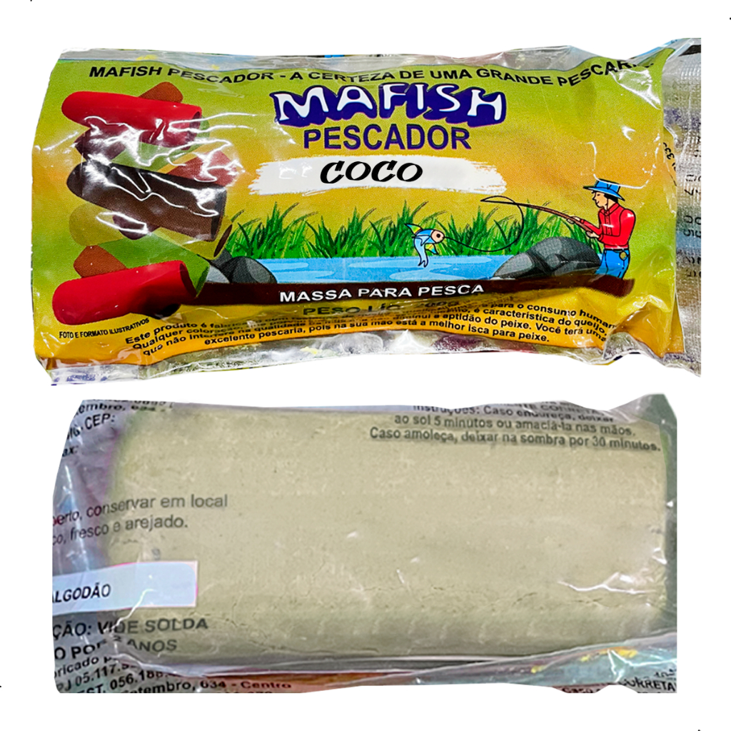 Massa Pesca Mafish Pescador 200g Fedidinha Diversos Sabores Massa Pronta Para Pesca Mafish 200g, a massa milagrosa e fedidinha do jeito que todo pescador gosta, perfeita para ocasiões de peixes manhosos, funciona em qualquer pesqueiro, se tornando uma isca essencial para a sua pescaria. Fácil de utilizar e de armazenar, a Massa Fedidinha da Mafish não pode faltar em sua tralha de pesca. ESPECIFICAÇÕES Marca: Mafish Pescador Modelo: Massa Fedidinha Sabores: Milho Verde, Goiaba, Sangue, Coco, Banana, Tradicional, Vermelha Peso: 200g Composição: Raspa de queijo, farinha de trigo, sangue de boi, milho verde, banana, ração de peixe e gordura animal. Dimensões do pacote: 13cm x 5cm Instruções para conservação Mafish. Se ela endurecer, deixar ao sol por 5 minutos ou amaciá-la com as mãos; Se amolecer demais, deixar na sombra por 30 minutos que ela volta a ficar no ponto; Quando abrir, conservar em local seco, fresco e arejado. Imagens Ilustrativas ======================================================================= Nossa empresa atua exclusivamente no comércio de PESCA, CAMPING e LAZER. Trabalhamos com as melhores e mais renomadas marcas do mercado. Confira algumas vantagens de comprar conosco: - Temos CNPJ, somos uma empresa consolidada - Emitimos Nota Fiscal eletrônica - Postamos sua encomenda no mesmo dia ou NO MÁXIMO no próximo dia útil - GARANTIA dos produtos vendidos - Todos os produtos são TESTADOS antes do envio - Produtos a pronta entrega - Atendimento personalizado - Produtos ORIGINIAIS de alta qualidade