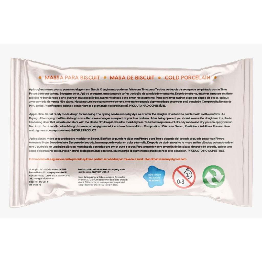 MASSA PARA BISCUIT INK WAY COLORIDA (CAIXA COM 20 PEÇAS) Instruções de Compra: No ato da compra, favor escolher as cores desejadas e nos enviar por mensagem na própria Shopee. Temos um prazo de 24 horas para enviar o pedido. Caso as cores não sejam enviadas no prazo, enviaremos cores sortidas. Características: Ecologicamente Correta: Produto sustentável. Sem Formol: Garantia de segurança e saúde. Baixo V.O.C.: Menor emissão de compostos orgânicos voláteis. Massa Macia: Textura suave e fácil de trabalhar. Sem Rachaduras: Acabamento perfeito após a secagem. Uso: Pronta para Modelagem: Ideal para diversos projetos de biscuit. Tingimento: Pode ser tingida com tinta para tecido. Pintura: Após secagem, pode ser pintada com tinta fosca para artesanato. Secagem: Ao ar livre. Conservação: Envolver a massa aberta em filme plástico, retirando todo o ar, e guardar em saco plástico bem fechado para evitar ressecamento. Durabilidade: Para melhor conservação das peças secas, aplicar uma camada de verniz. Cores Disponíveis: Amarelo Bebê Amarelo Limão Amarelo Ouro Ametista Azul Bebê Azul Celeste Azul Cobalto Azul Marinho Branco Cinza Cinza Lunar Laranja Lilás Lilás Bebê Marrom Chocolate Marrom Terra Pele amarela - (Antigo Pele) Pele Rosada - (Antigo Pele de Bebê) Pele Alaranjada - (Antigo Pele de Boneca) Pele Negra - (Antigo Pele Morena) Pêssego Preto Rosa Rosa Bebê Rosa Antigo Rosa Escuro Siena Tiffany Tiffany Bebê Verde Bandeira Verde Bebê Verde Folha Verde Musgo Vermelho Rubi Vermelho Chinês Vermelho Marsala Violeta