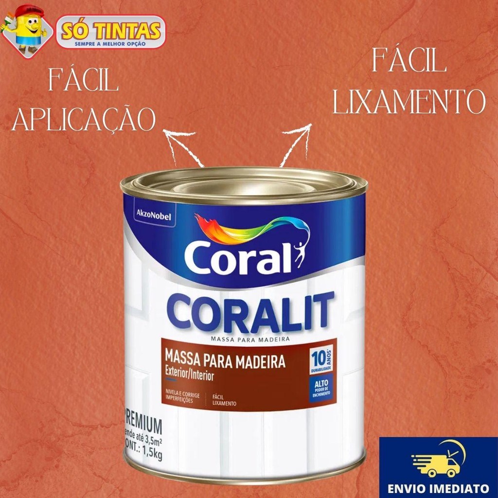 Imagine um acabamento perfeito, onde cada detalhe brilha com qualidade. Com a Massa Para Madeira Coralit, você consegue uma superfície lisa e impecável, pronta para receber o acabamento desejado. A Massa Para Madeira Coralit transforma a experiência de aplicação com sua fórmula inovadora. Veja como ela pode facilitar seu trabalho: •Fácil Aplicação: Use espátula ou desempenadeira de aço para uma aplicação rápida e uniforme. •Alto Poder de Enchimento: Preenche perfeitamente buracos e imperfeições, reduzindo a necessidade de múltiplas demãos. •Secagem Rápida: Com apenas 30 minutos para secar ao toque, você pode avançar rapidamente para as etapas seguintes do seu projeto. •Lixamento Simplificado: Lixe facilmente para uma superfície suave, permitindo um acabamento de alta qualidade. •Durabilidade Garantida: Quando combinada com os esmaltes sintéticos da Família Coralit, oferece até 10 anos de proteção, garantindo um investimento seguro. Benefícios: •Versatilidade: Ideal para uso em ambientes internos e externos. •Rendimento Aumentado: Economize tempo e dinheiro com maior cobertura por embalagem. •Proteção Superior: Mantém a beleza e a integridade da madeira ao longo do tempo. Dados Técnicos Nome do Produto: Massa Para Madeira Coralit Fórmula: Base Acrílica Cor: Branca Ambiente Indicado: Interno/Externo Aplicação: •Ferramenta: Espátula ou desempenadeira de aço Especificações: •Quantidade de Demãos: 1 (pode ser aplicado mais se necessário) •Secagem ao Toque: 30 minutos •Secagem entre Demãos: 3 horas •Secagem Final: 6 horas •Rendimento: Aproximadamente 4,5 m², por demão dependendo da espessura da aplicação Propriedades: •Aderência: Excelente aderência a superfícies de madeira •Poder de Enchimento: Alto poder de enchimento para correção de imperfeições •Lixabilidade: Fácil lixamento após a secagem •Durabilidade: Garantia de 10 anos quando utilizado com os esmaltes sintéticos da Família Coralit Aplicação Passo a Passo: 1.Preparação da Superfície: oCertifique-se de que a superfície de madeira esteja limpa, seca e livre de poeira, gordura ou resíduos. Se necessário, lixe levemente a área a ser corrigida. 2.Mistura: oSe necessário, misture bem a Massa Para Madeira Coralit antes da aplicação para garantir homogeneidade. 3.Aplicação: oUse uma espátula ou desempenadeira de aço para aplicar a massa nas imperfeições. Aplique uma camada uniforme, pressionando levemente para preencher as fendas ou buracos. 4.Alisamento: oApós aplicar, alise a superfície com a espátula, removendo o excesso de massa. Isso facilita o lixamento posterior e melhora o acabamento. 5.Secagem: oAguarde 30 minutos para a secagem ao toque. Durante esse tempo, evite tocar na massa. 6.Lixamento: oApós a secagem, lixe a área corrigida com lixa fina para obter uma superfície lisa e uniforme. Utilize uma lixa de grão 220 ou superior. 7.Demão Adicional (se necessário): oSe houver imperfeições visíveis após o lixamento, aplique uma segunda demão seguindo os mesmos passos. Aguarde 3 horas entre demãos. 8.Finalização: oApós a secagem final de 6 horas, a superfície estará pronta para receber a tinta de acabamento ou esmalte da Família Coralit. Principais perguntas: Acompanha nota fiscal? Sim, todos os nossos produtos são enviados com nota fiscal. O envio é por Correios? Pode ser enviado por Correios ou por transportadora privada, isso vai depender da disponibilidade das transportadoras que atendem o seu endereço. Porque não posso comprar mais de 4 unidades no mesmo pedido? Infelizmente há uma limitação por parte das transportadoras. Elas enviam apenas 4 unidades em cada pedido devido às dimensões e peso do pacote. Para mais unidades, você vai precisar fazer mais de um pedido, respeitando o limite máximo de 4 por pedido. Só Tintas, sempre a melhor opção. Somos a maior rede de lojas de tintas no estado do Rio de Janeiro. Desde 1977, a Só Tintas atua no Rio de Janeiro oferecendo os melhores produtos e soluções em pintura imobiliária, automotiva e industrial. Somos uma empresa familiar que começou em Teresópolis e hoje temos mais de 30 lojas físicas. Trabalhamos de forma ética e transparente, com o principal objetivo de proporcionar aos nossos clientes um atendimento de excelência, provendo as melhores soluções. Nossa missão é levar cor para a vida das pessoas. Por isso a Só Tintas é Sempre a Melhor Opção