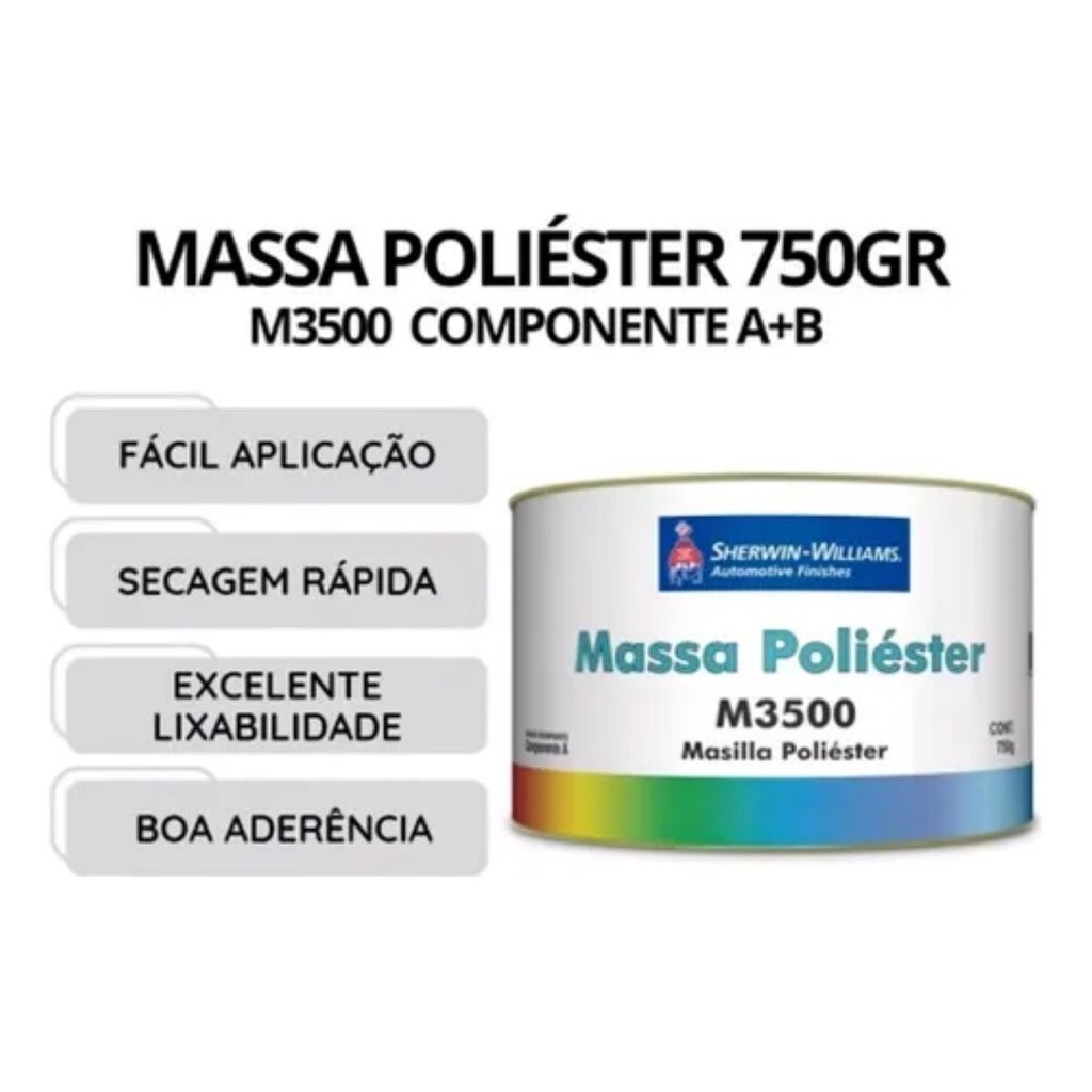 Massa Poliester Lazzuril 750g Automotiva Para Correções De Pintura Indicado para correção de defeitos de superfície, substituindo a massa rápida e a massa plástica em uma única aplicação.Possui alto teor de sólidos e elevado poder de enchimento, fácil aplicação, secagem rápida, excelente lixabilidade. Apresenta boa aderência na maioria dos substratos metálicos aluminios e galvanizado. MASSA POLIESTER + CATALISADOR M3500 AUTOMOTIVA 750G LAZZURIL