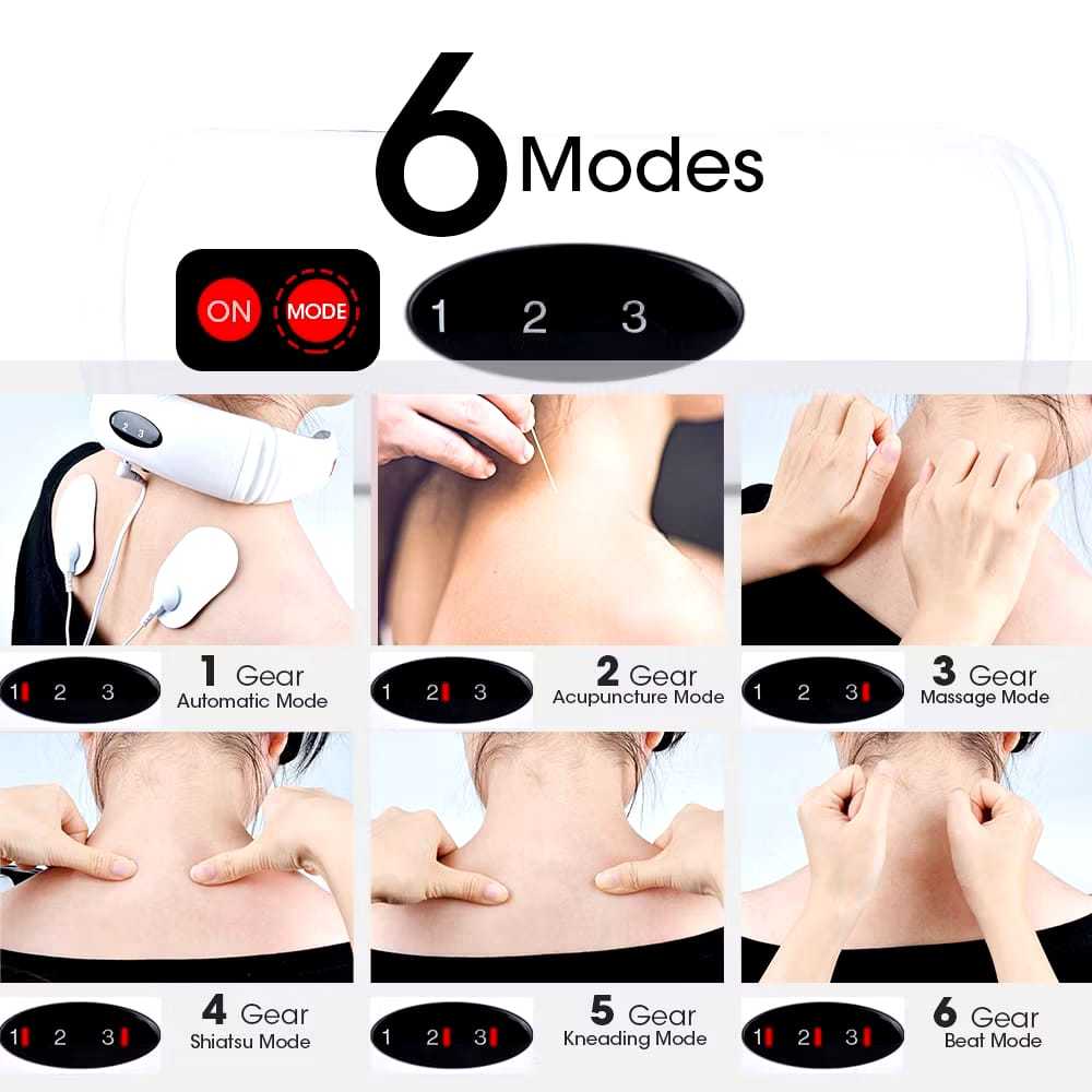 Massageador De Pescoço Elétrico Fisioterapia 6 modos Com Eletrodos Alivia Dores