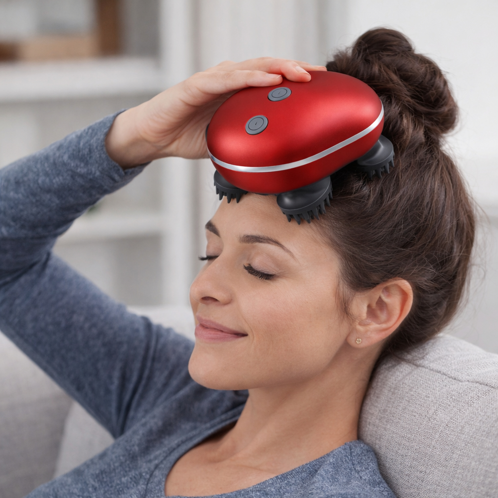 Massageador Elétrico Recarregável 4 Cabeças 3 Intensidades Profissional Anti Estresse Portátil