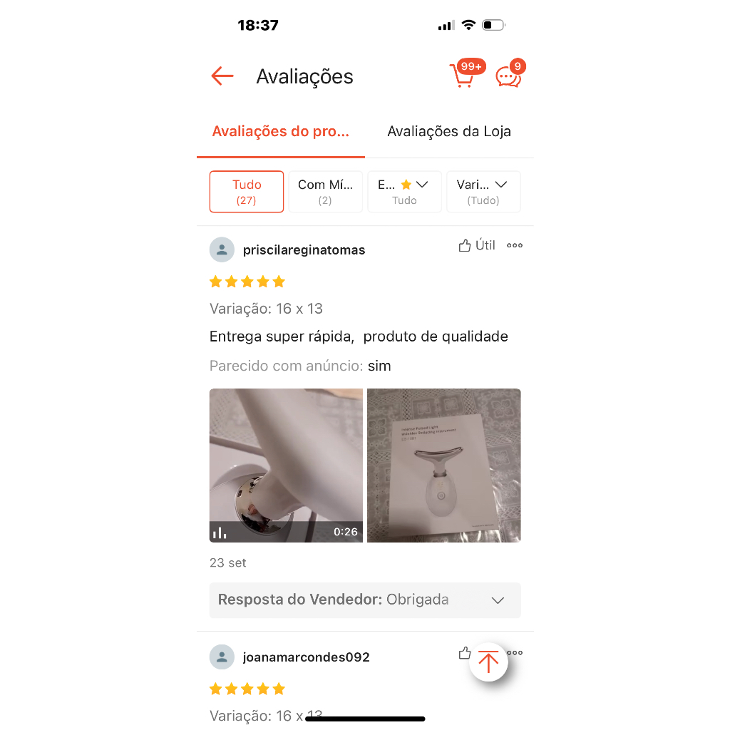 | Massageador Facial LED Reduz Papada e Flacidez | Lifting Facial Com... este produto | R$ 119,90 | — | 4.9/5 | 20 |