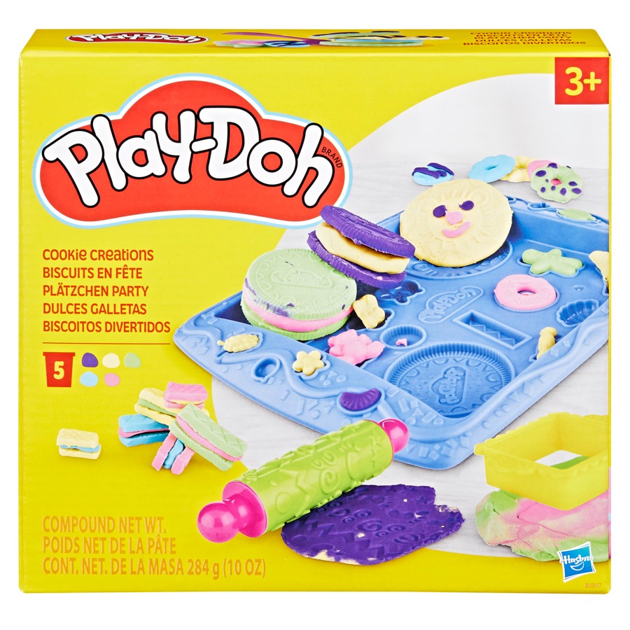 Biscoitos divertidos de Play-Doh É possível moldar vários tipos de biscoitos com a bandeja e os cortadores O rolo faz texturas divertidas na massinha Várias decorações possíveis com ferramenta de coberturas e os meio-moldes Cores incríveis para usar a imaginação Inclui uma bandeja, acessórios e 5 potes de massinha Play-Doh