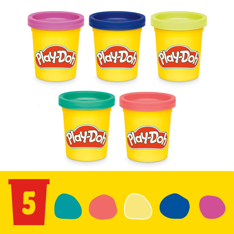 Massinha Play Doh Brinca e Aprender. Brinquedo Educativo para colaborar no desenvolvimento e aprendizagem da criança. Contém 5 potes de massinha e acessórios, figuras geométricas e um caderninho.