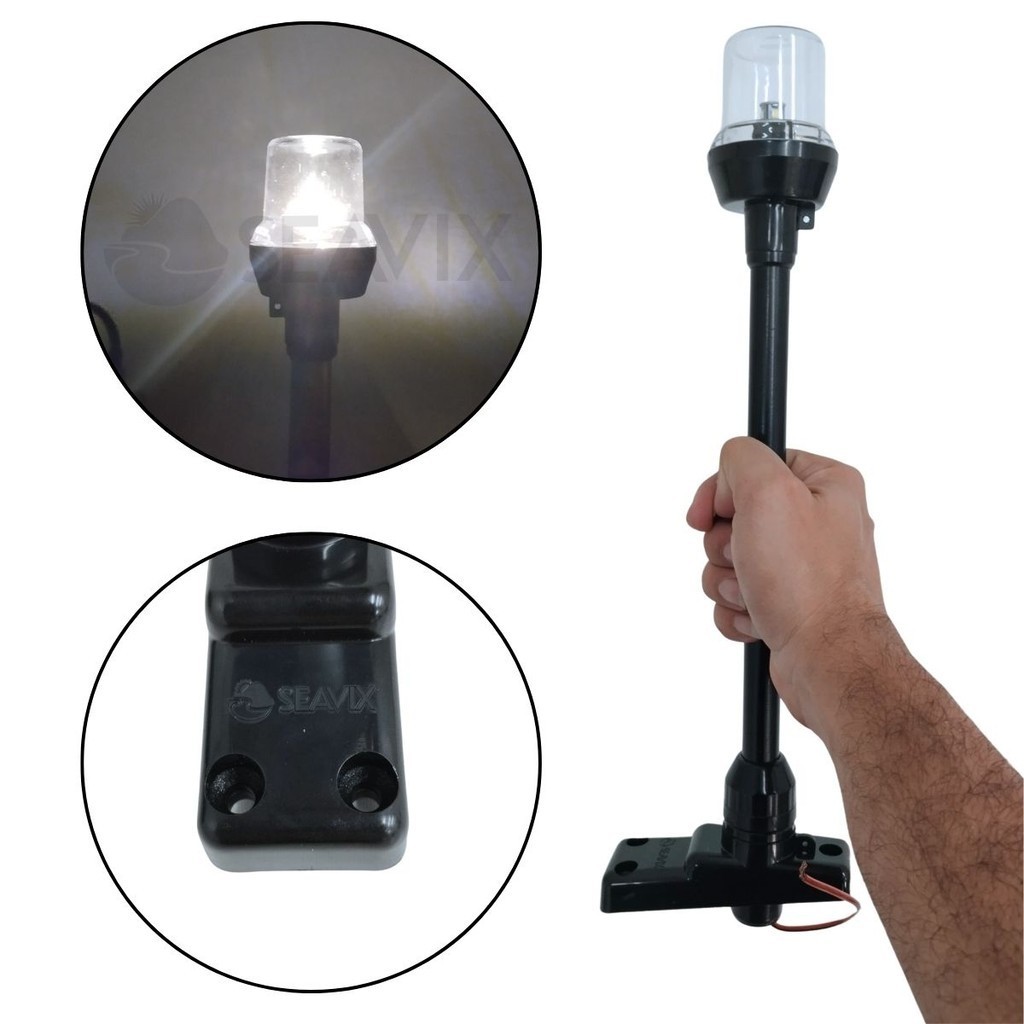 Mastro Luz De Alcançado Preto/Preto Lente incolor 35cm 12V para Barcos lanchas veleiros e catamarã
