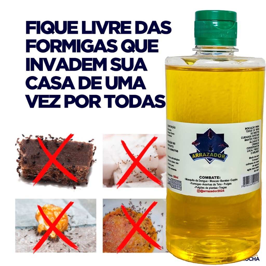 MATA FORMIGAS ARRAZADOR SEM CHEIRO 100% NATURAL - QUÍMICA ROCHA ATENÇÃO!!!! -> Produto 100% natural e sem cheiro, ideal para uso doméstico. Não prejudica pets e plantas. Utilize com segurança em qualquer ambiente. BENEFÍCIOS: Eficaz contra diversas pragas: formigas, baratas, moscas, lagartas, aranhas, pulgões, traças e cupins. Sem odor: Proporciona um ambiente limpo e sem cheiro desagradável após a aplicação. 100% natural: Seguro para uso doméstico, livre de componentes químicos agressivos. Pronto para uso: Acompanha borrifador para facilitar a aplicação. FICHA TÉCNICA: Tipo de produto: Natural Composição: Sumo de cebola, Vinagre e citronela. Volume: 1 litro Eficácia: Formigas, baratas, moscas, lagartas, aranhas, traças, cupins e outros insetos. Aplicação: Ambientes internos e externos Acessório: Borrifador incluso O QUE ACOMPANHA O PRODUTO? 500ml de Arrazador Sem Cheiro Natural 1 Borrifadores para facilitar a aplicação DÚVIDAS FREQUENTES: Minha compra é segura? Toda transação realizada na Shopee é processada em ambiente seguro. Se seu produto não for entregue, a Shopee devolve o seu dinheiro. O produto é prejudicial para pets? O produto não é prejudicial para pets, desde que seus tutores mantenham o local bem higienizado após a aplicação. Limpe o local após 2h de aplicação para evitar que seus pets tenham acesso aos insetos mortos. Proteja sua casa e ambiente de trabalho contra infestações de formigas de forma eficaz e segura com o Mata Formigas Arrazador Sem Cheiro Natural, distribuído pela Química Rocha.