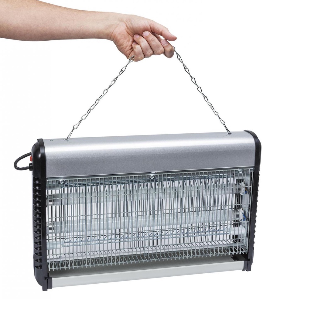 Mata Insetos Profissional Kala Ideal para uso em ambientes fechados como frutaria, supermercados, fábricas, lojas, depósitos, hotéis, estábulos, celeiros, entre outros. Permite o funcionamento contínuo durante o dia e a noite. - Baixa consumo de energia - Possui grade de proteção. - Área de atuação aproximadamente 50m² - Contém 2 lâmpadas tubulares fluorescente. - Possui alça para instalação - Bandeja coletora de inseto. Referencia: 0314 - Marca: Kala - Tensão: 127v ou 220v ( Escolher conforme disponibilidade). - Área de Atuação: 50m² Aproximadamente - Composição: Alumínio e ABS - Cor: Prata e Preto - Potência: 16 Watts - Embalagem: Caixa Papelão - Garantia: 90 dias - Conforme Portaria 371 de 29/12/2013 INMETRO
