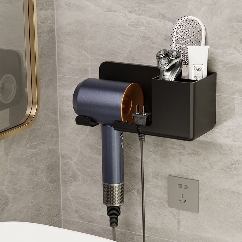 suporte porta secador (o foto so o sugestao , não incluso o secador e acessorio,apenas o suporte) Especificação: Cor: branco ou cinza escuro Material: PP Tamanho: 23x 8,8x9,5cm O pacote inclui: 1pcs*Suporte para secador de cabelo ou kit com 2pçs