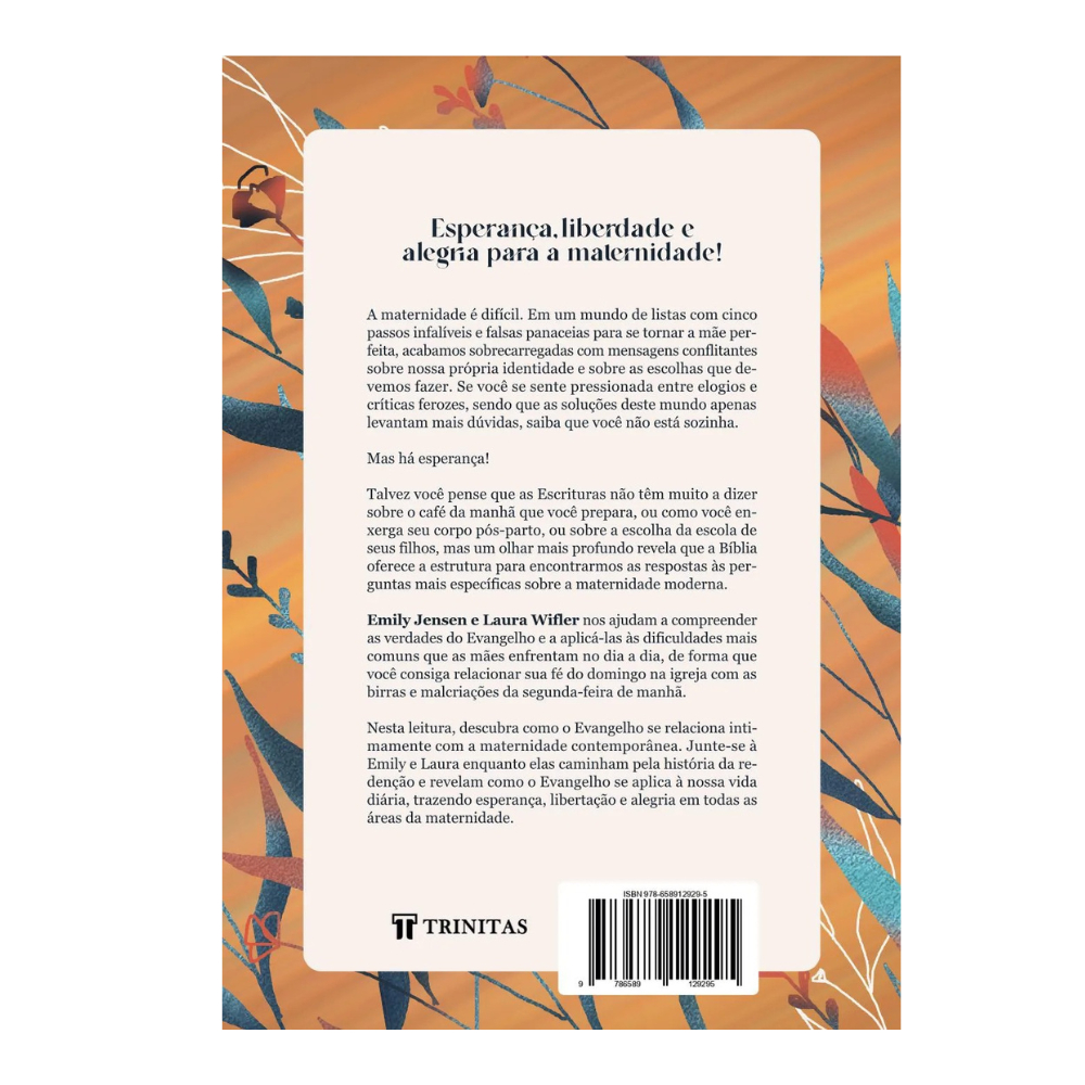 Esperança, liberdade e alegria para a maternidade! A maternidade é difícil. Em um mundo de listas com cinco passos infalíveis e falsas panaceias para se tornar a mãe perfeita, acabamos sobrecarregadas com mensagens conflitantes sobre nossa própria identidade e sobre as escolhas que devemos fazer. Se você se sente pressionada entre elogios e críticas ferozes, sendo que as soluções deste mundo apenas levantam mais dúvidas, saiba que você não está sozinha. Mas há esperança! Talvez você pense que as Escrituras não têm muito a dizer sobre o café da manhã que você prepara, ou como você enxerga seu corpo pós-parto, ou sobre a escolha da escola de seus filhos, mas um olhar mais profundo revela que a Bíblia oferece a estrutura para encontrarmos as respostas às perguntas mais específicas sobre a maternidade moderna. Emily Jensen e Laura Wifler nos ajudam a compreender as verdades do Evangelho e a aplicá-las às dificuldades mais comuns que as mães enfrentam no dia a dia, de forma que você consiga relacionar sua fé do domingo na igreja com as birras e malcriações da segunda-feira de manhã.Nesta leitura, descubra como o Evangelho se relaciona intimamente com a maternidade contemporânea. Junte-se à Emily e Laura enquanto elas caminham pela história da redenção e revelam como o Evangelho se aplica à nossa vida diária, trazendo esperança, libertação e alegria em todas as áreas da maternidade. 16x23cm 232 Páginas