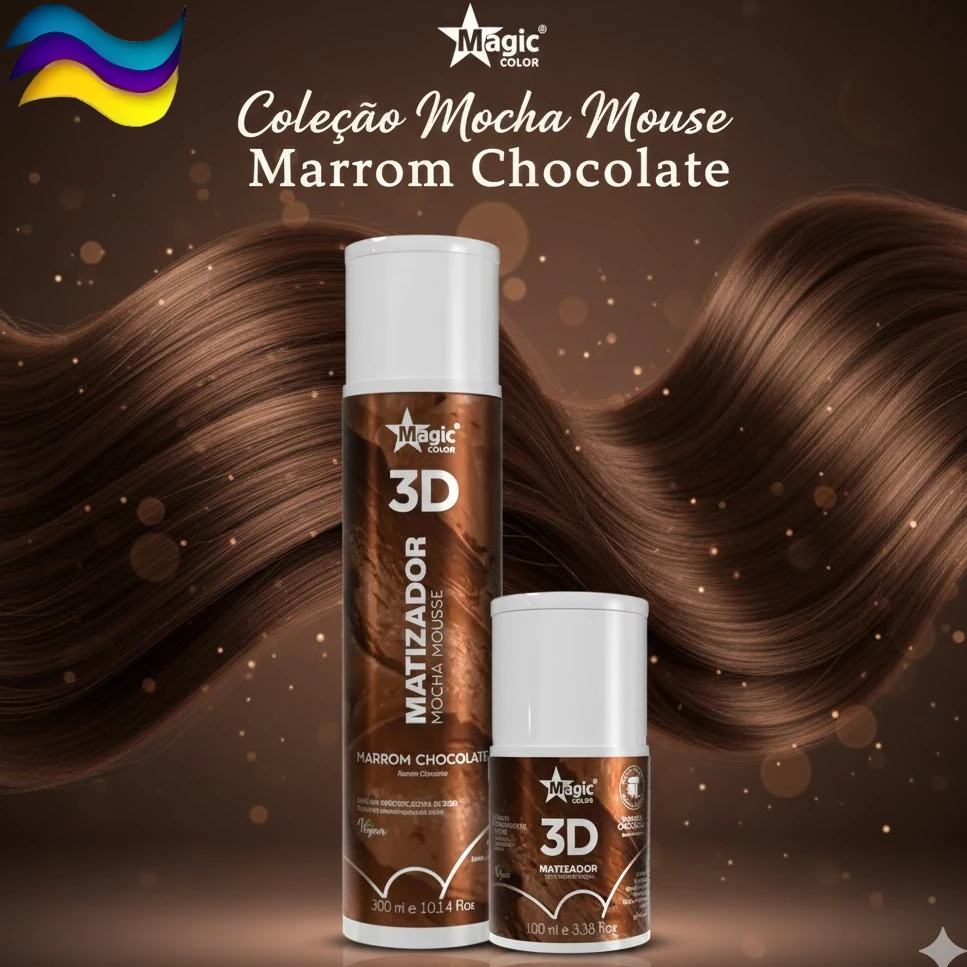 Matizador Mocha Mousse Chocolate 3D Magic Color Máscara Intensificadora Marrom Chocolate Tonalizante aparece na subcategoria Tinta de Cabelo (de Beleza) na Shopee Brasil por R$ 24,39 (26% de desconto sobre o preço original de R$ 32,96). Avaliado em 5.0/5 pelos compradores e 16 unidades vendidas, este produto se destaca pelo excelente custo-benefício.