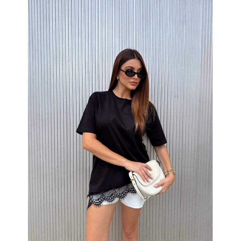 Nossa inspiração das passarelas conta com um design e acabamento impecável. uma peça super elegante e versátil. Tecido malha 100% algodao com renda na barra. TAM único, vestindo até o 44 tranquilamente, modelagem over!
