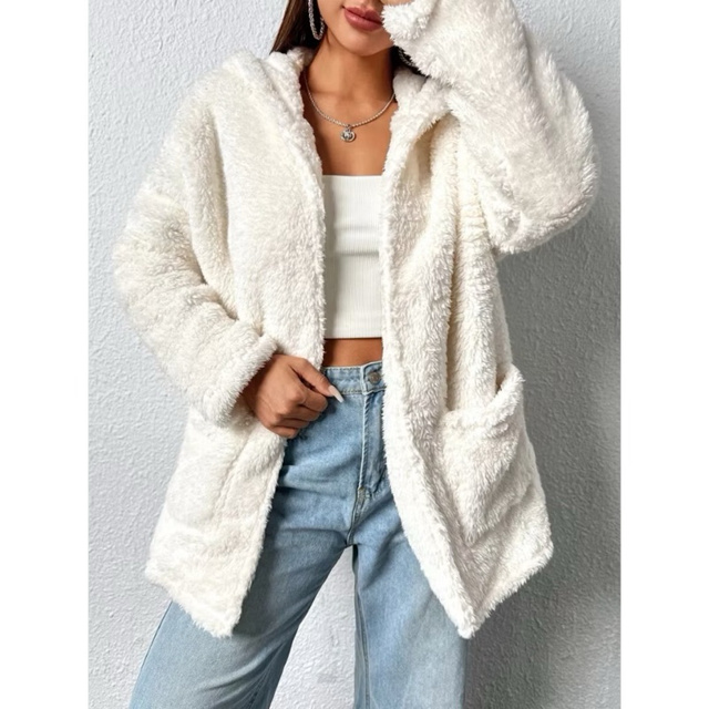 Max Casaco Teddy Pelo Quentinho Com Touca SobreTudo Blusão Lã Jaqueta Capuz e Bolso