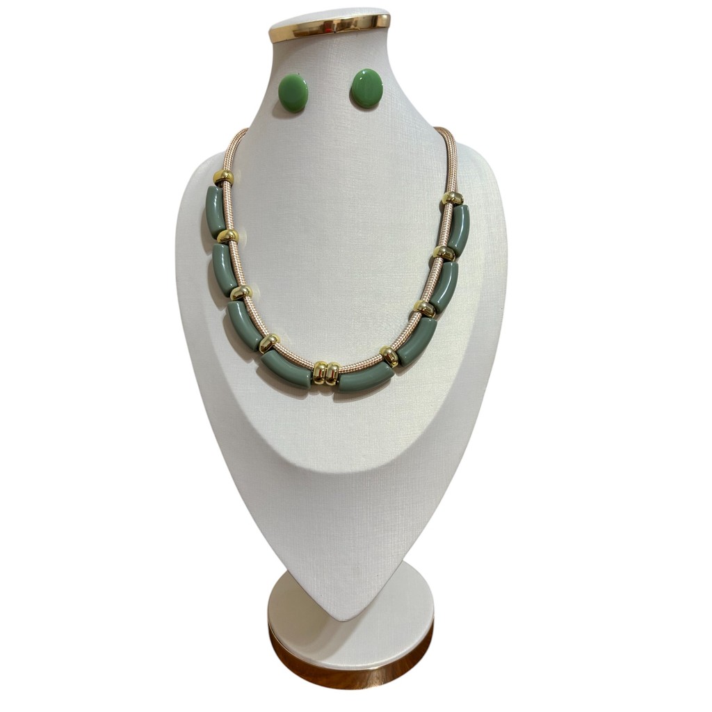 Maxi Colar Feminino Cristal Resina Kit Com Brinco Elegante