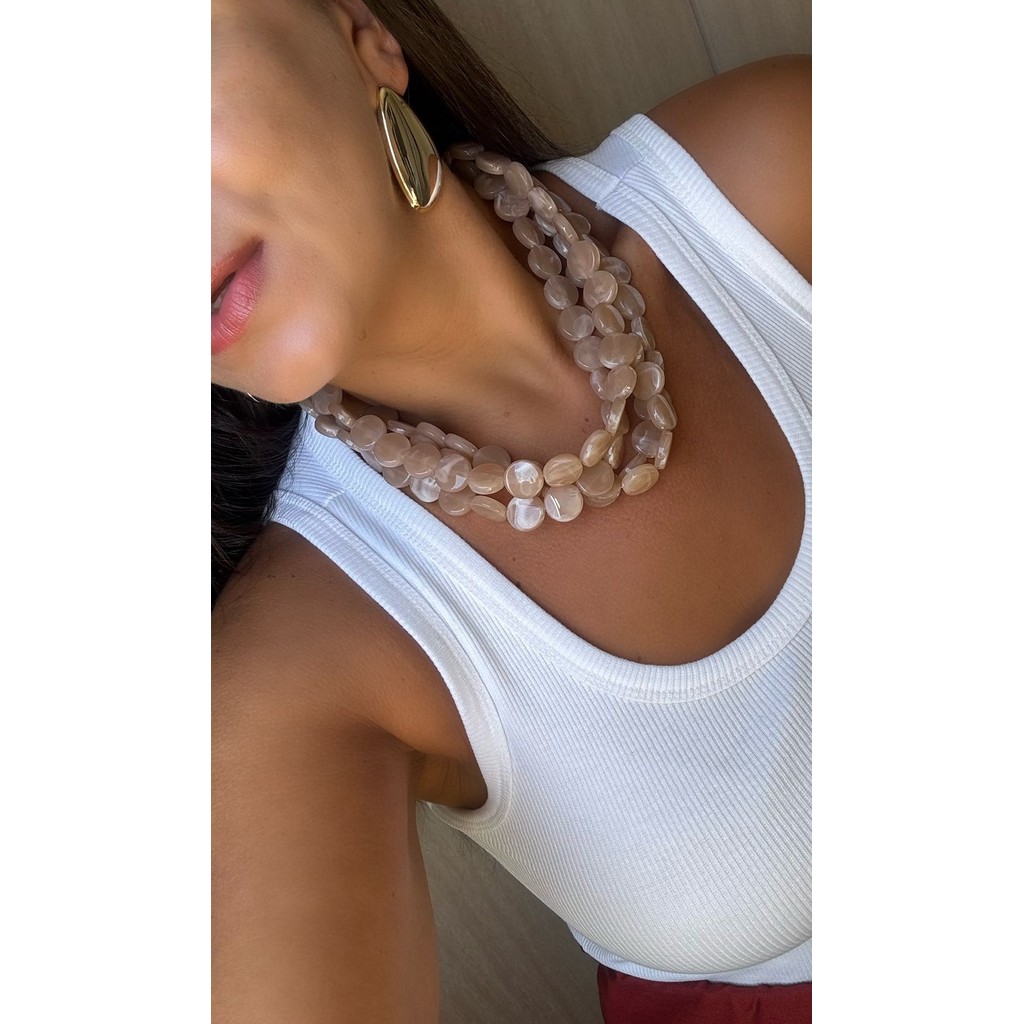 Destaque-se com este imponente maxi colar composto por 4 camadas de placas de resina de alta qualidade. Com acabamento em níquel e design sofisticado, ele é perfeito para valorizar qualquer produção. A corrente extensora garante ajuste ideal ao pescoço, oferecendo flexibilidade de tamanho para diferentes estilos e ocasiões. O colar tem 61 centimetros de circunferência, acabamento em níquel. As cores do produto podem variar levemente de acordo com a configuração e a resolução da tela do seu dispositivo. Para maior durabilidade, recomendamos cuidados básicos com a peça, como evitar o contato com água, perfumes e cremes. Seguindo esses cuidados, sua bijuteria manterá o brilho e a beleza por muito mais tempo.