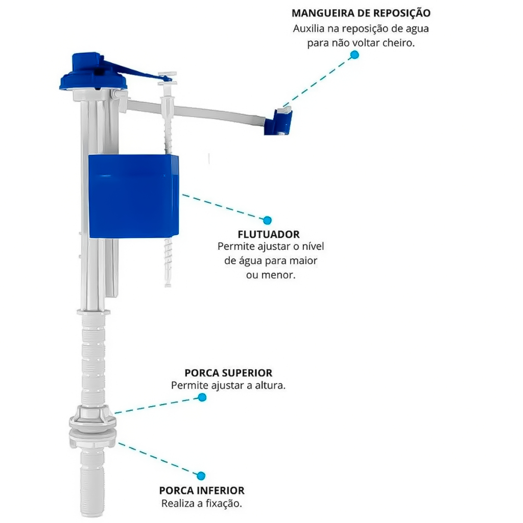 Mecanismo Completo Universal Com Entrada Hidráulica E Acionamento Superior Para Caixa De Descarga