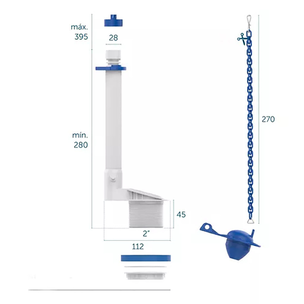 O Mecanismo de saída para caixa acoplada S/ Castelo Universal da Blukit, tem como objetivo controlar a saída do fluxo de água da caixa para o vaso sanitário, garantindo máxima economia. Aprovado nos testes de qualidade, esse mecanismo garante excelente vedação, funcionamento e resistência. Vantagens: - Sistema universal - Compatibilidade - Fácil instalação - Suporta ambientes salinos, vibrações, altas e baixas temperaturas - Sistema convencional - Resistente a baixas e altas pressões. Ficha técnica: - Classe de pressão: 1 a 75 m.c.a - Rosca de saída: 2” - Temperatura máxima de trabalho: 45°C - Cor: Branco e azul - Marca: Blukit - Material: Plástico Abs - Capacidade em volume: 6L Garantia: 3 meses pelo fabricante