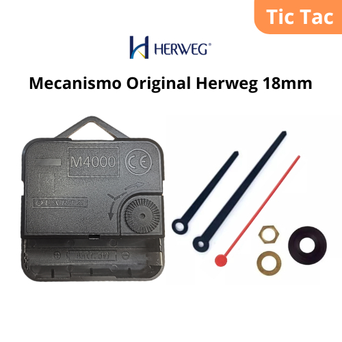 Mecanismo Relógio Parede Eixo Médio 18mm Tic Tac Original Herweg M4000