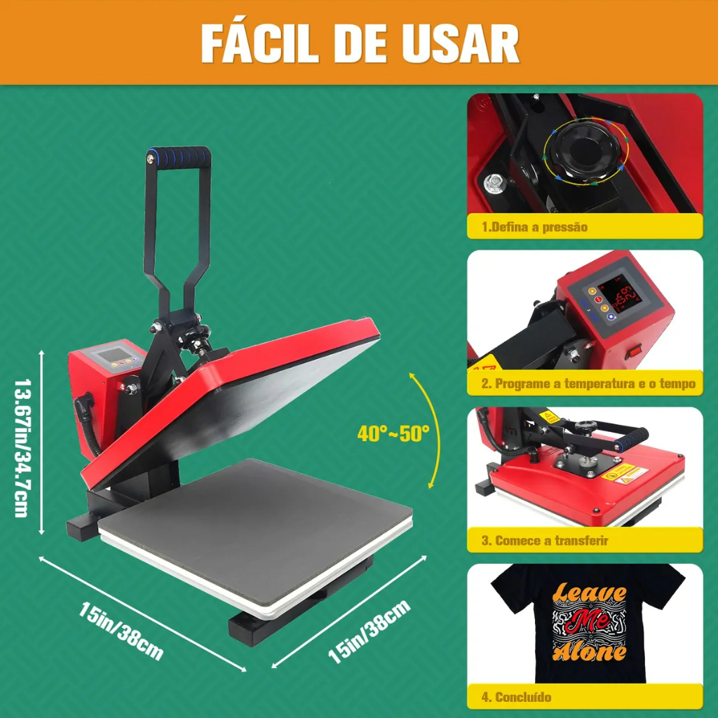 Mecolour Prensa Térmica Semi Automática Gaveta Deslizante 38x38cm 220V A máquina possui função de puxar, que é mais segura e evita queimaduras. A Prensa Plana 38x38 Mecolour tem a versão mais atualizada no Brasil! Acabamento impecável em uma estrutura robusta e design moderno a prensa térmica 38x38 da Mecolour atende as expectativas mais exigentes, dificilmente ela vai apresentar problemas de display ou estrutura. Com baixo consumo de energia e perfeita emissão de calor, alta capacidade de pressão em toda a extensão da chapa que possui acabamento em pintura teflonada, o display é de fácil utilização. Essa prensa possibilita a sublimação de produtos planos, como camisetas, pedras, porta retratos, chaveiros, chinelo e etc. CARACTERÍSTICAS - Marca: Mecolour - Modelo:versão mais nova - Produto Resistente - Tamanho: 38X38cm - Baixo Consumo - Display Digital de Tempo e Temperatura - Controle Digital de Temperatura e Tempo - Grande Abertura A PRENSA PODE PERSONALIZAR DIVERSOS MATERIAIS COMO: - Capas de Almofada; - Camisetas; - Bolsas; - Chinelos; - Mouse Pads; - Azulejos; - Quebra Cabeças; - Capinhas de Celular; - Chaveiros;