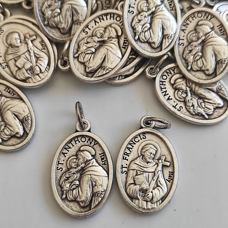 Medalha Italiana Santo Antônio São Francisco Dupla Face
