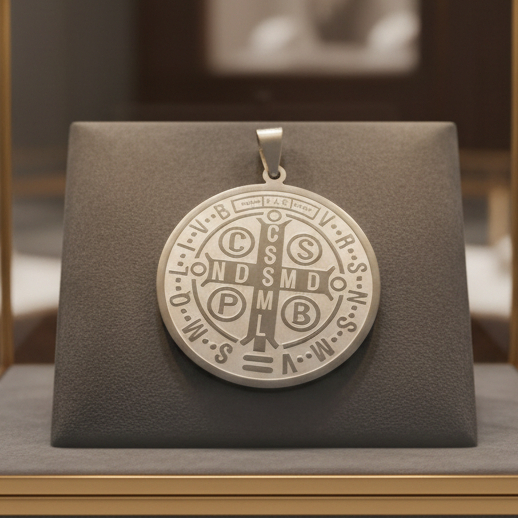 Medalha Pingente São Bento Dupla Face Aço Cirúrgico Prata