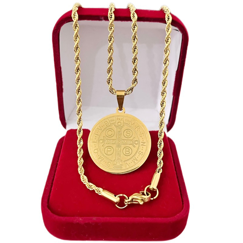 Medalha São Bento Proteção + Cordão Baiano Banhado a Ouro Religioso