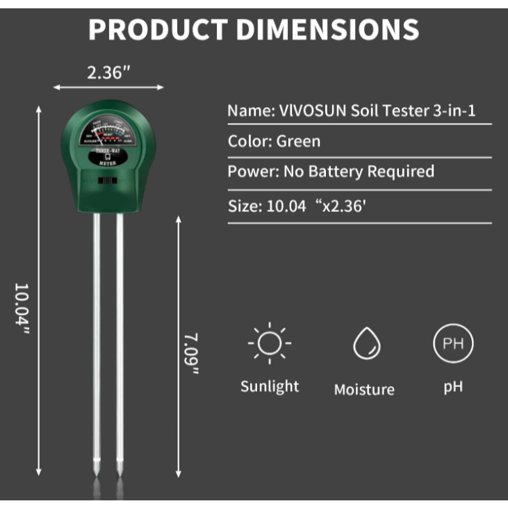 Medidor de Solo Plantas Digital 3 em 1 - PH, Umidade, Luz e Termômetro O Medidor de Solo 3 em 1 é uma ferramenta essencial para jardineiros e cultivadores que buscam manter as condições ideais para suas plantas. Este dispositivo mede o valor de pH, a temperatura do solo, a umidade e a intensidade da luz solar, proporcionando uma visão completa do ambiente de cultivo. Com esse medidor, você pode otimizar o cuidado com suas plantas, seja em hortas, pomares ou gramados. Funções do Medidor: Valor de pH: Mede a acidez ou alcalinidade do solo para ajudar no ajuste das condições de cultivo. Temperatura do Solo: Fornece a leitura exata da temperatura para monitorar o ambiente ideal para cada planta. Umidade do Solo: Indica o nível de umidade para garantir a quantidade adequada de água. Intensidade de Luz Solar: Avalia a luz disponível para ajustar a localização ou exposição da planta. Especificações Técnicas: Faixa de Medição de pH: 3.5 a 9.0 Faixa de Medição de Temperatura: -9°C a +50°C (16-122°F), com precisão de 1°C/1°F Níveis de Luz Solar: 9 níveis - de BAIXO- a HGH+ Níveis de Umidade: 5 níveis - de SECA+ a MOLHADO+ Fonte de Alimentação: 1 bateria de 9V (não inclusa) Indicador de Bateria Fraca: Informa quando é necessário substituir a bateria. O Medidor de Solo Plantas Digital 3 em 1 é a ferramenta ideal para quem quer cuidar melhor das plantas, ajustando o ambiente e os nutrientes para um crescimento saudável e produtivo.