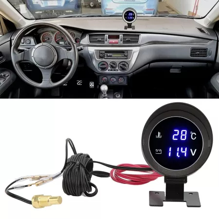 Medidor De Temperatura Água De Caminhão Digital LCD Redondo Sensor Moto + Voltímetro Voltagem 2 Em 1 12V 24V