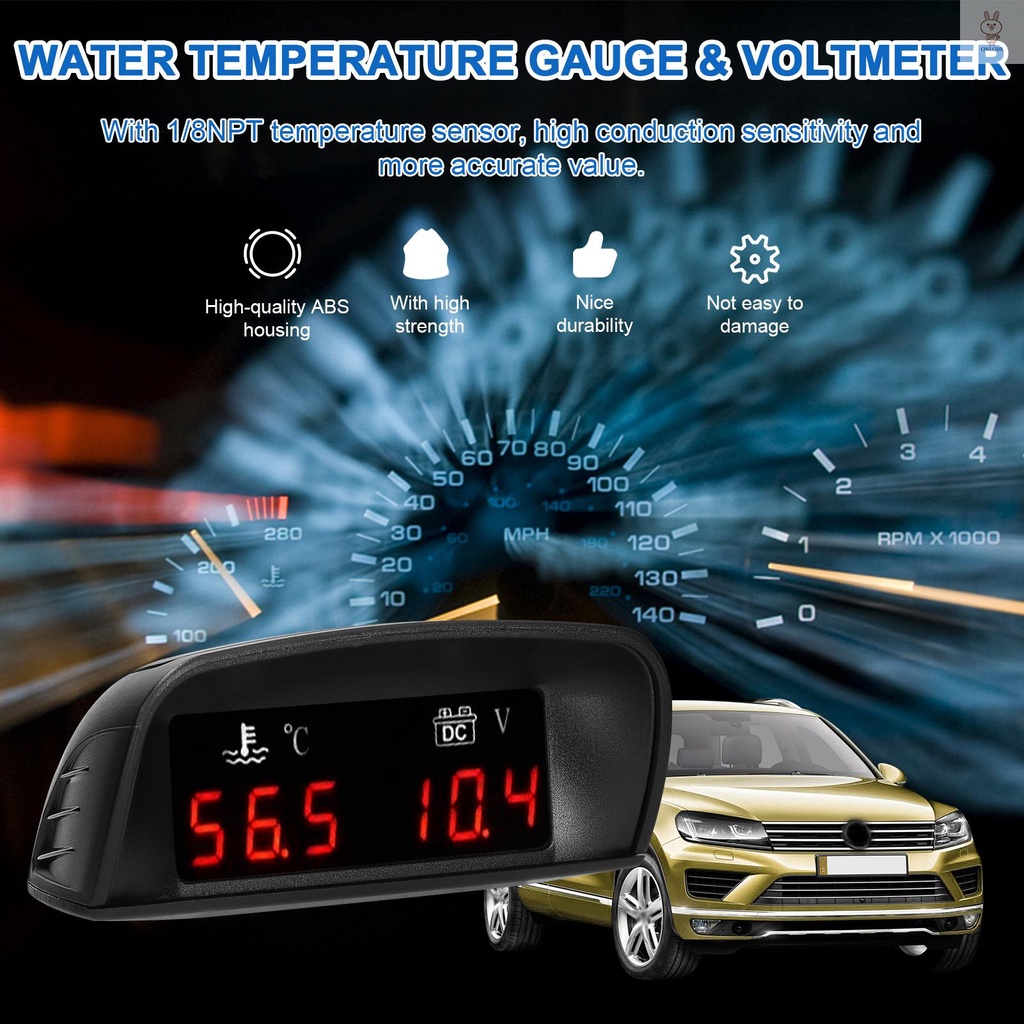 Medidor Digital De Temperatura De Água 2 Em 1 Para Carros Universal De Tensão Voltímetro 9-36V Com Sensor De 1/8NPT SUV RV De Caminhão