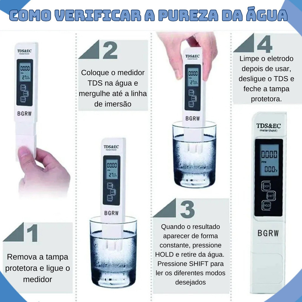 Medidor Digital Teste Qualidade Pureza Temperatura De Agua