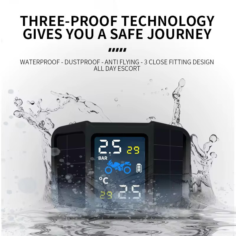 Medidor Solar de Pressão para Pneus de Moto com 2 Sensores IP67 Knup KP-S136