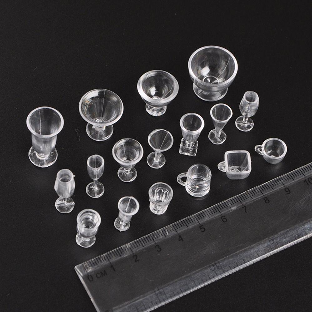 MEDUSA 17 Pçs/Set Mini Copo Modelo De Plástico Acrílico Acessórios Para Casa De Bonecas Miniaturas Cálice